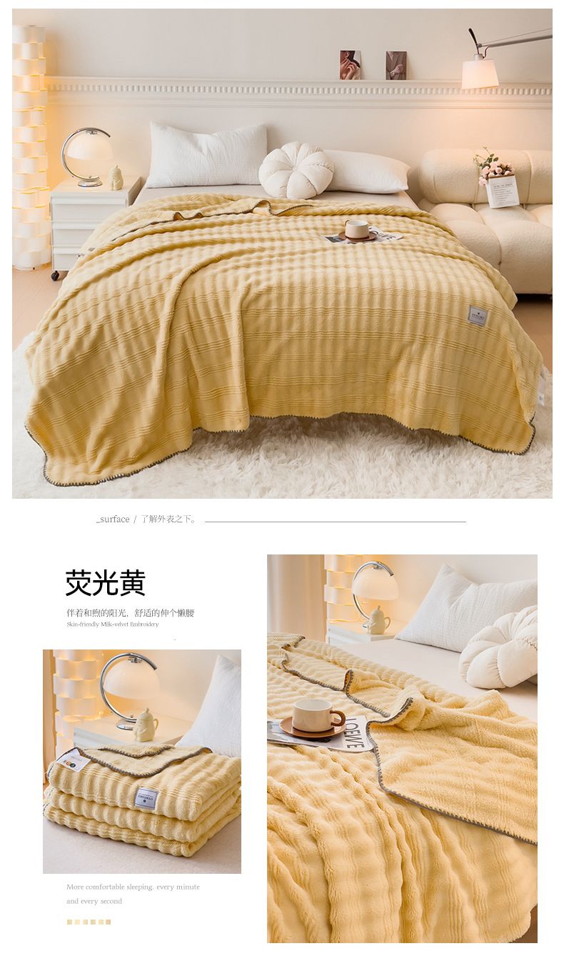 (总)宜家坊 2023新款秋冬高克重法莱绒羊羔绒立体剪花纯色多功能毛毯,奶油白,浅奶咖,绅士灰,胭脂粉,烟灰蓝,优雅棕