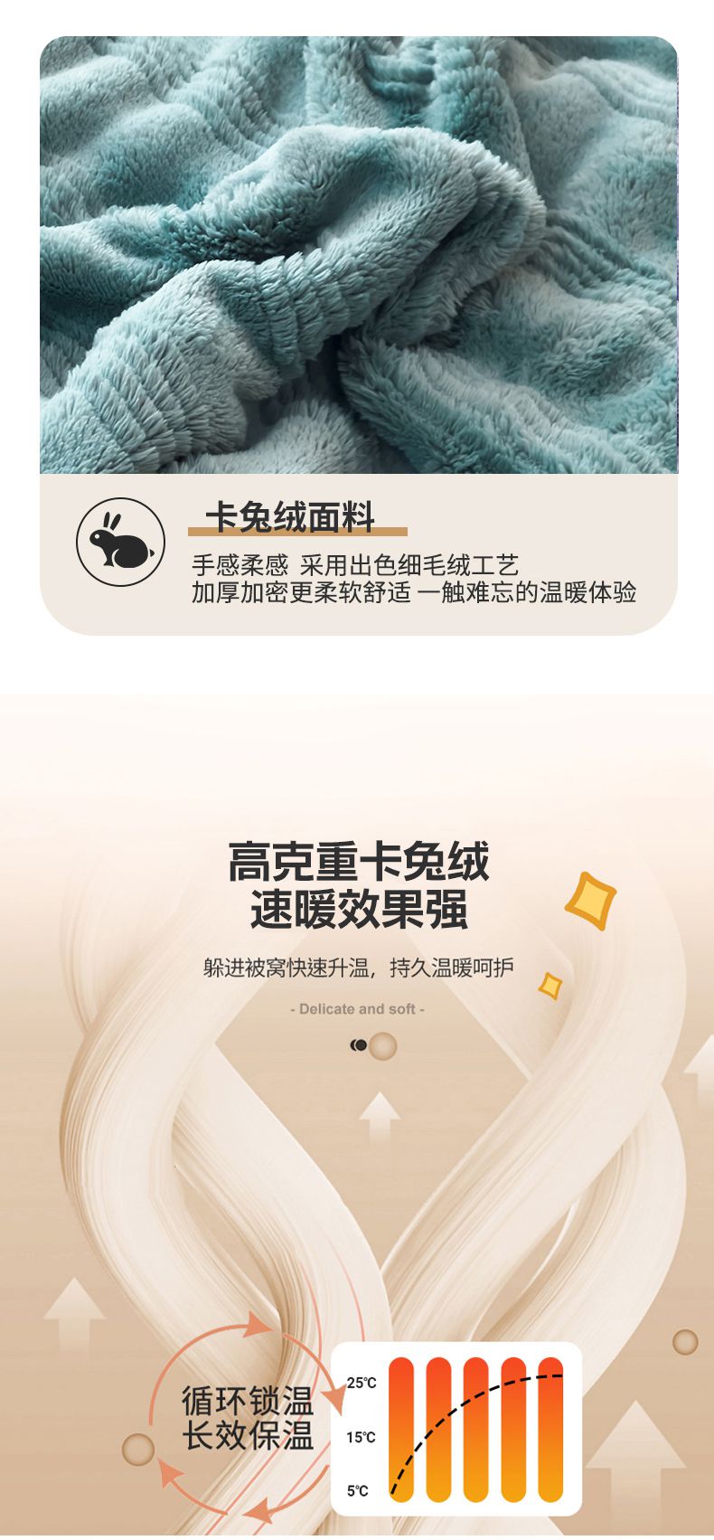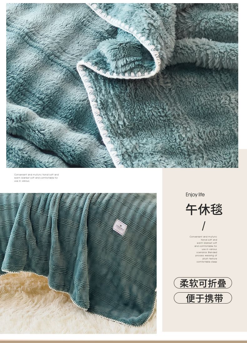 商品名称:宜家坊 2025新款高克重双面绒毛卡兔绒多功能毛毯 墨彩绿