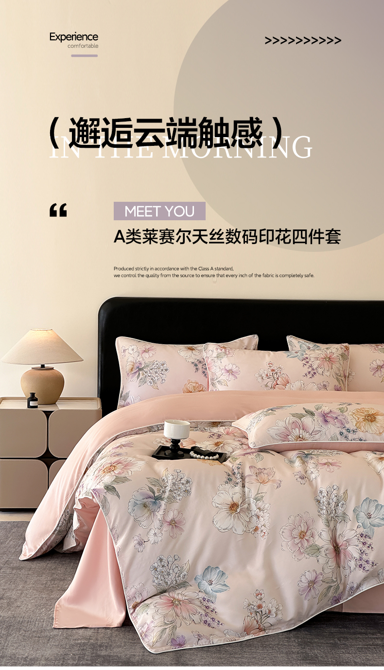 当前位置: 91家纺网 > 商品网购 > 床品套件 > 四件套 > 其它四件套 > 莱登卡奴 2025新款A类50支莱赛尔天丝数码印花麻绳款四件套 雅致粉