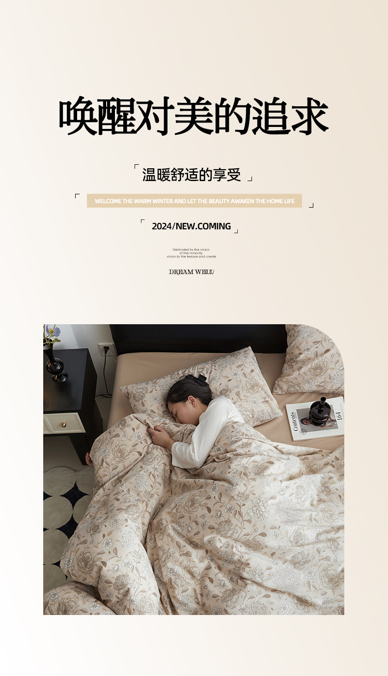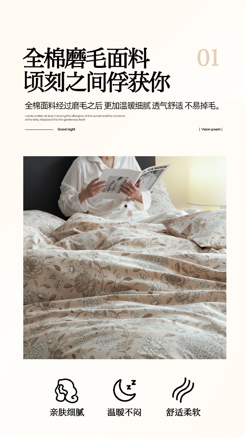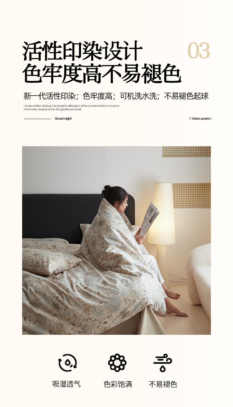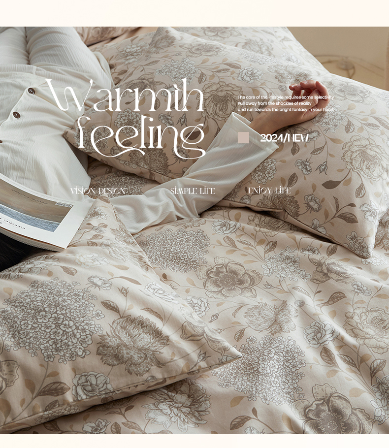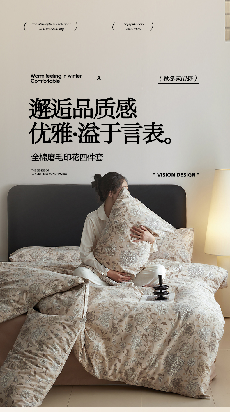 水洗的故事 2025新款全棉磨毛印花四件套 绽放