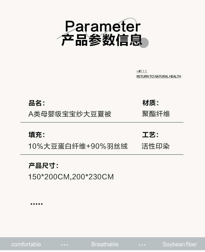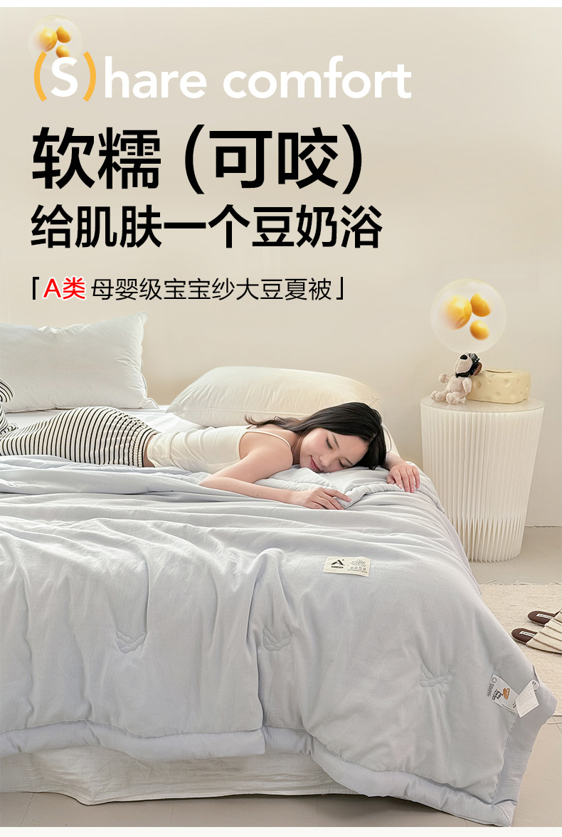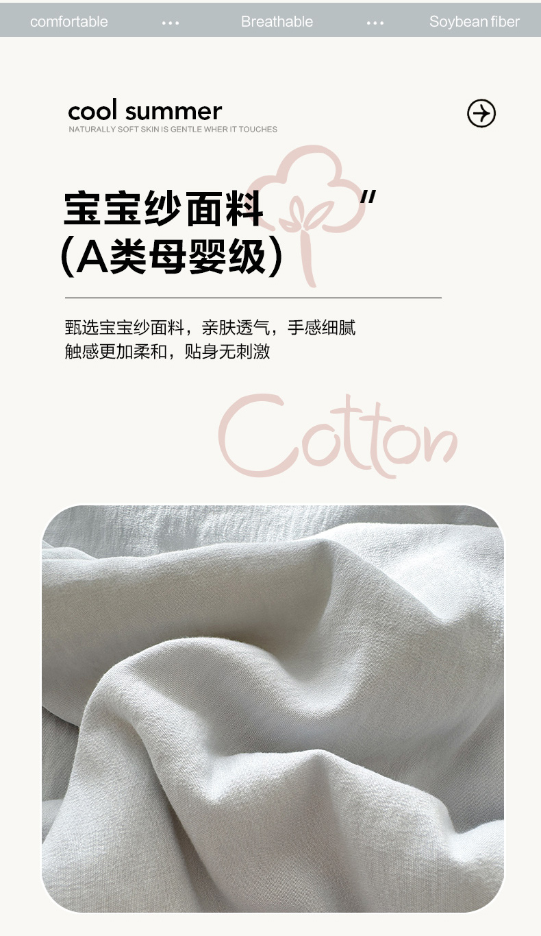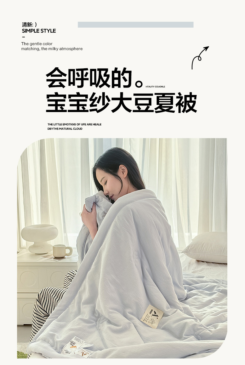 商品名称:丹本家纺 2025新款母婴级A类无印风超柔宝宝纱大豆夏凉被 浅兰灰