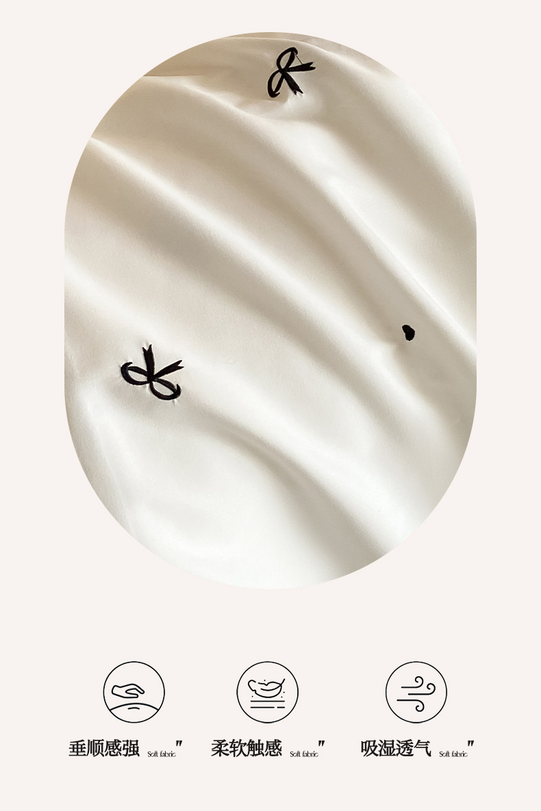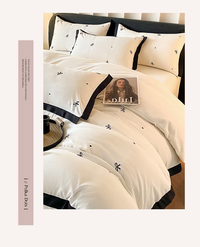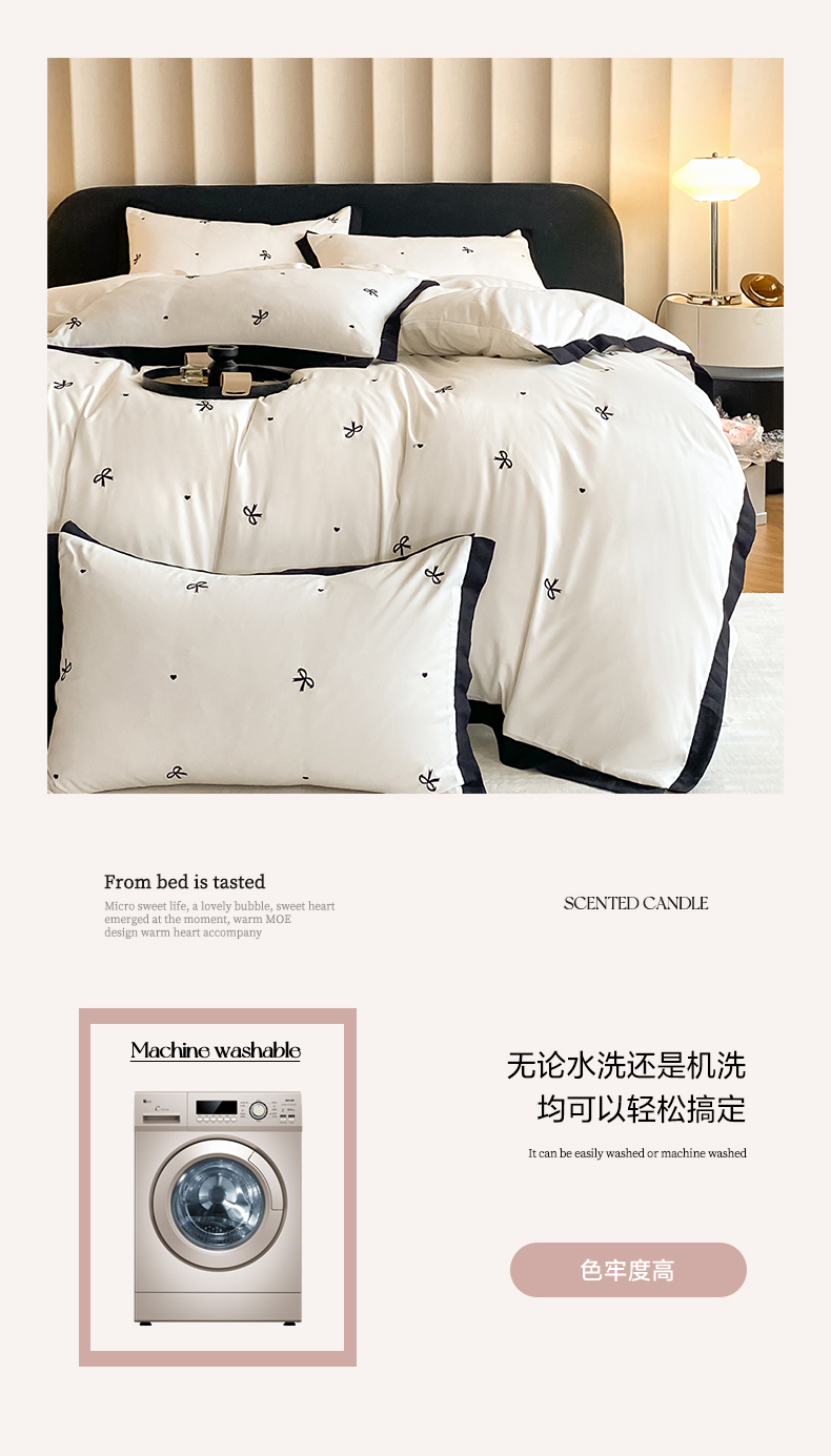 商品名称:米彩家纺 2025新款水洗磨毛四件套-蝴蝶结爱心系列 爱心奶昔白