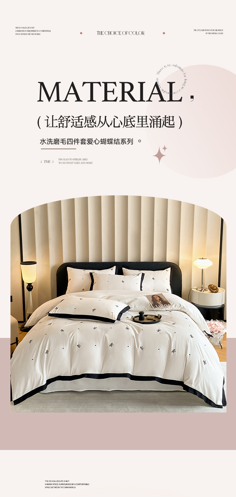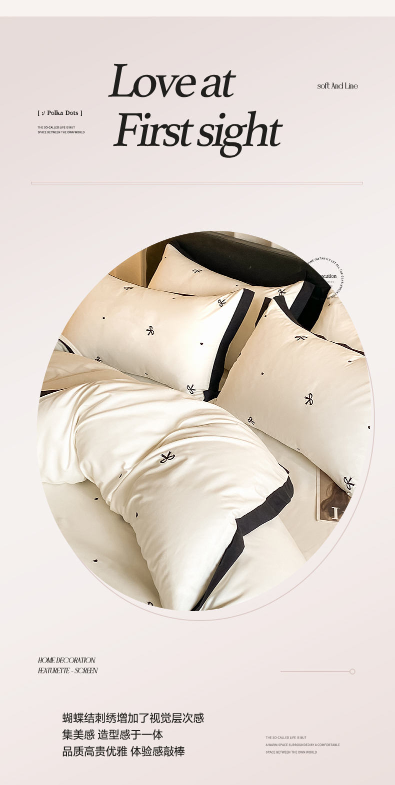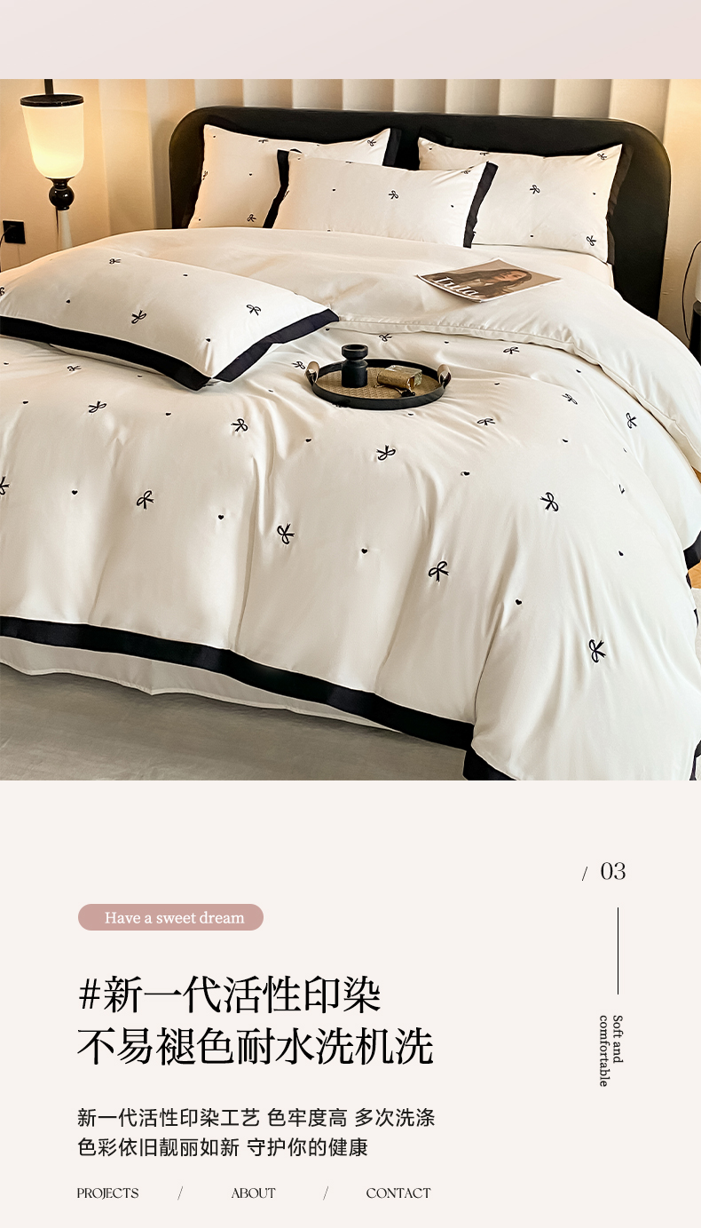 商品名称:米彩家纺 2025新款水洗磨毛四件套-蝴蝶结爱心系列 爱心奶昔白