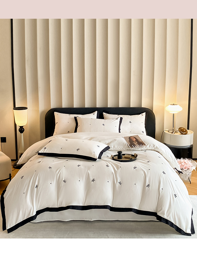 米彩家纺 2025新款水洗磨毛四件套-蝴蝶结爱心系列 爱心奶昔白