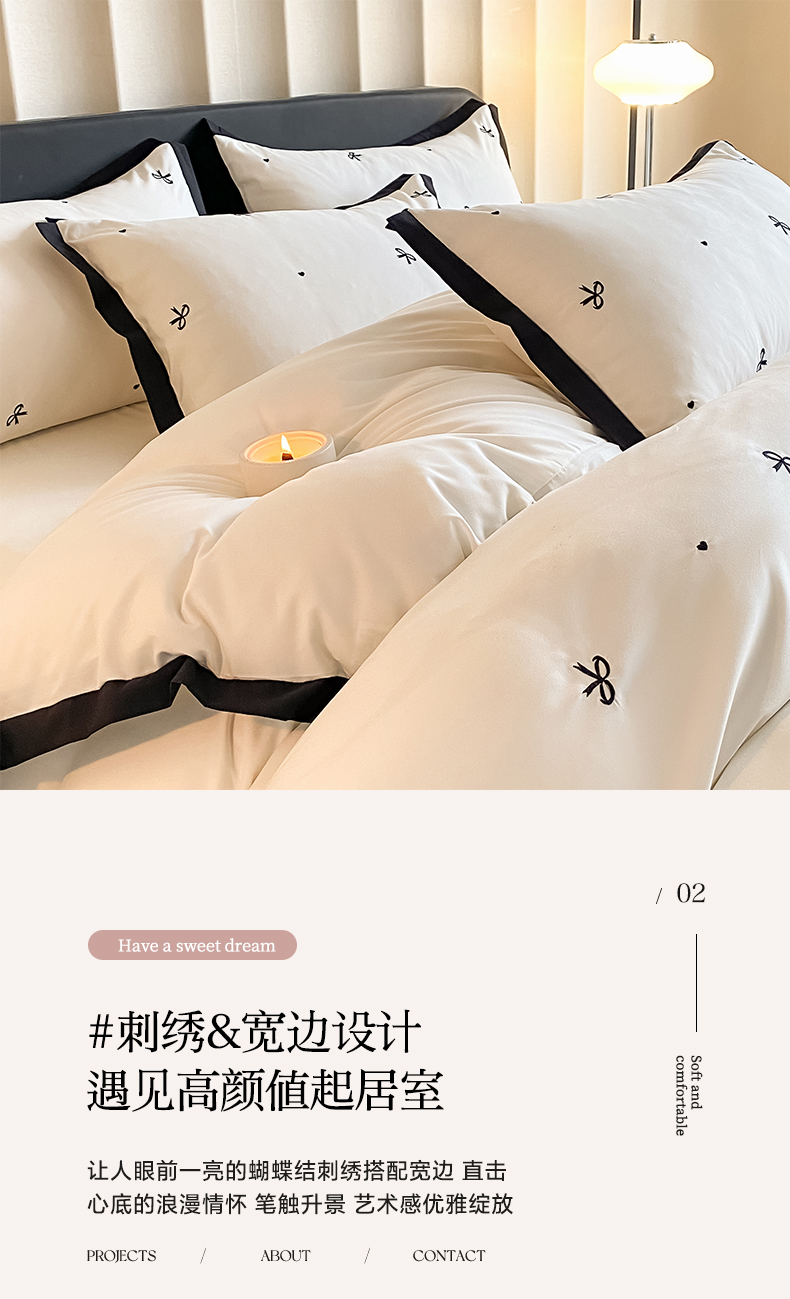 (总)米彩家纺 2025新款A类水洗真丝亮光浮雕花边四件套,粉香槟,粉玉,奶昔白,浅灰,天兰