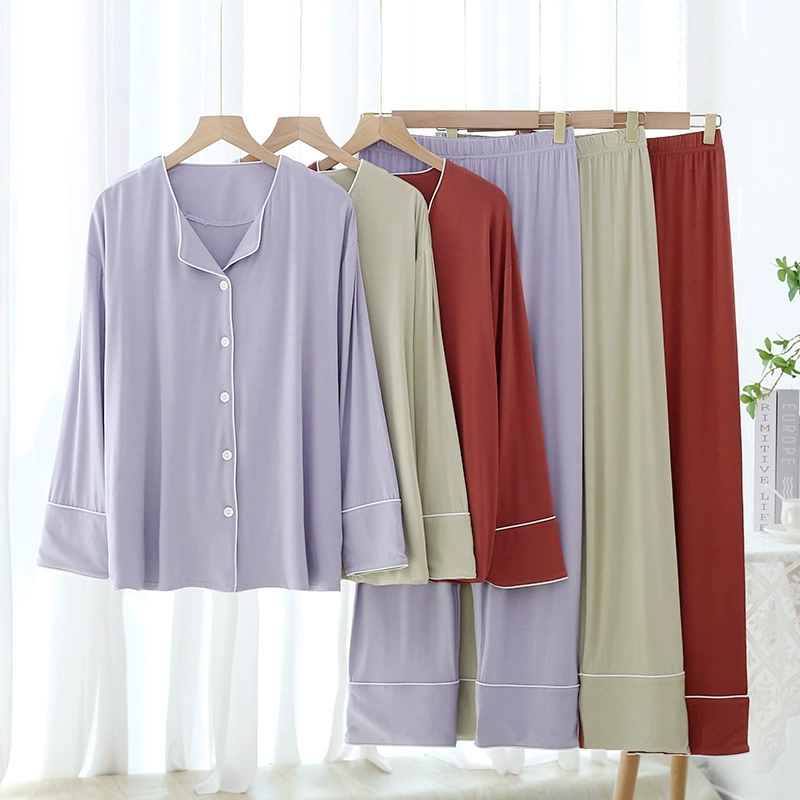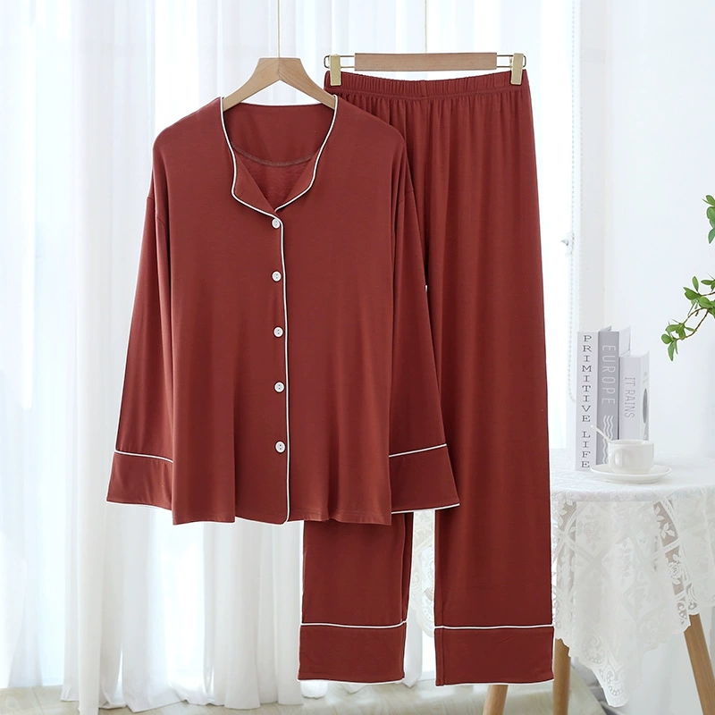 洛兰沙家居馆【只代发】【只代发】 2025新款家居服简约2022年春秋夏季可外穿薄款莫代尔棉开衫长袖睡衣套装女 红咖