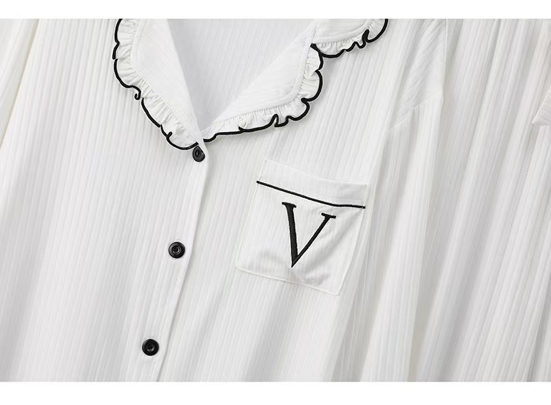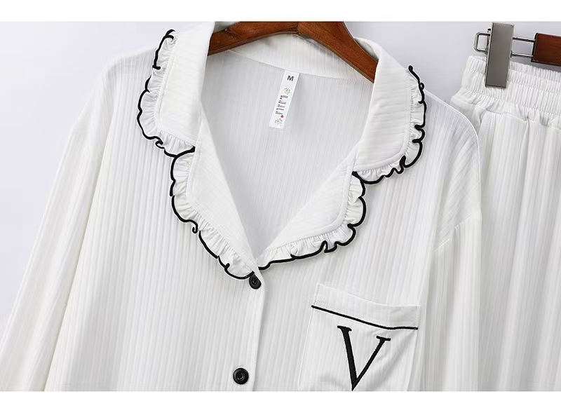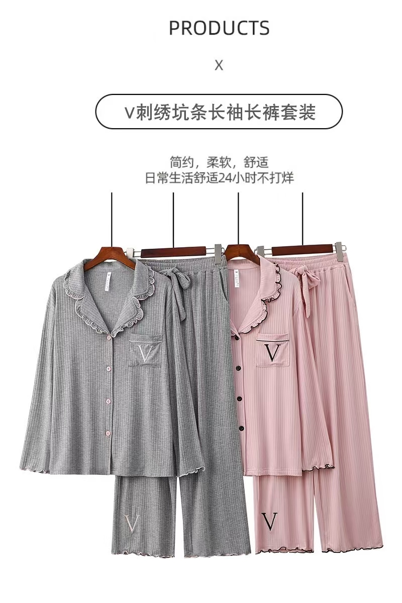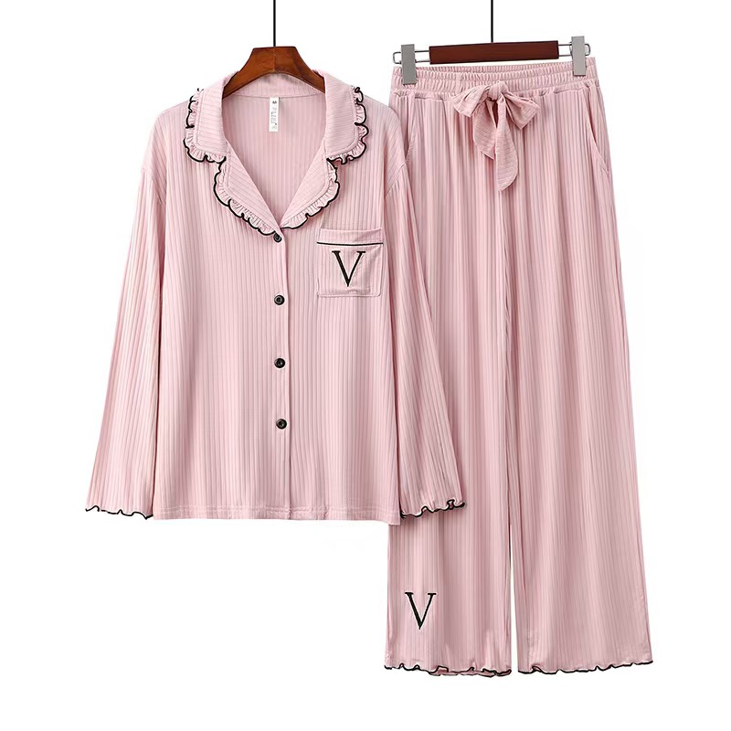 洛兰沙家居馆【只代发】【只代发】2025新款外贸欧美风8*5宽坑条莫代尔睡衣女春夏秋开衫翻领长袖长裤家居服 黑色