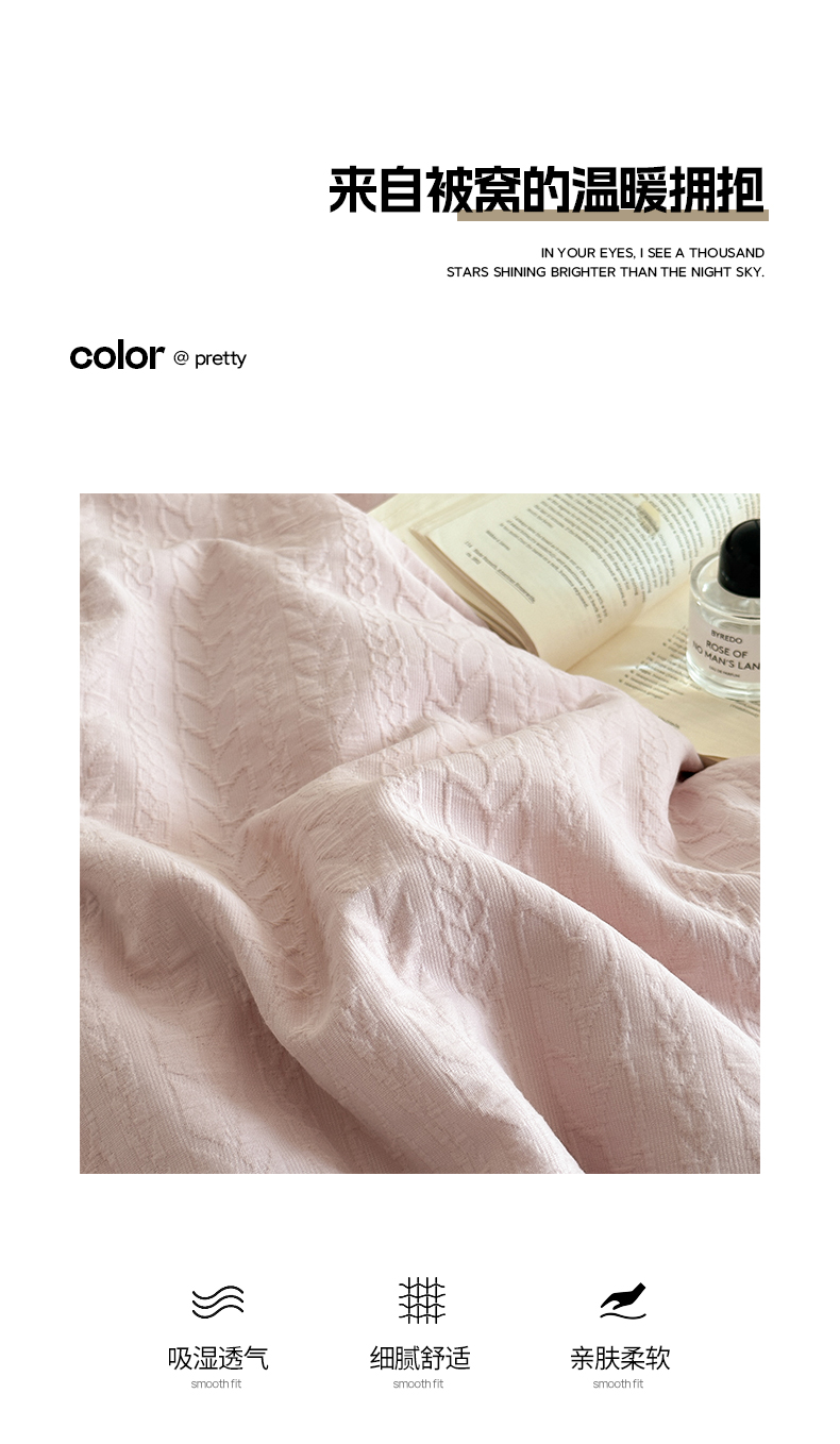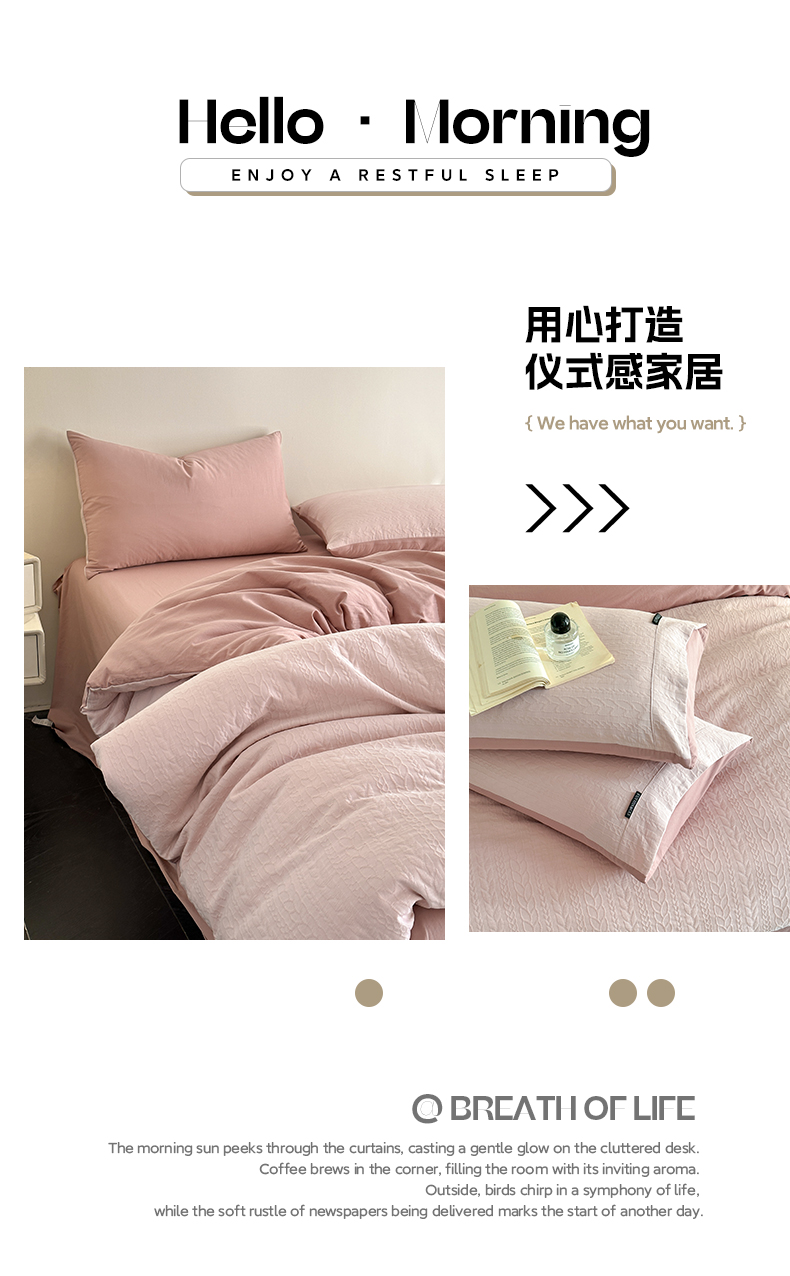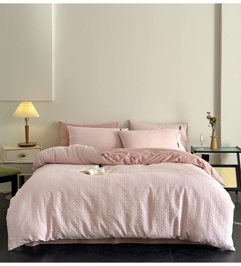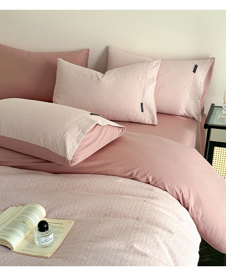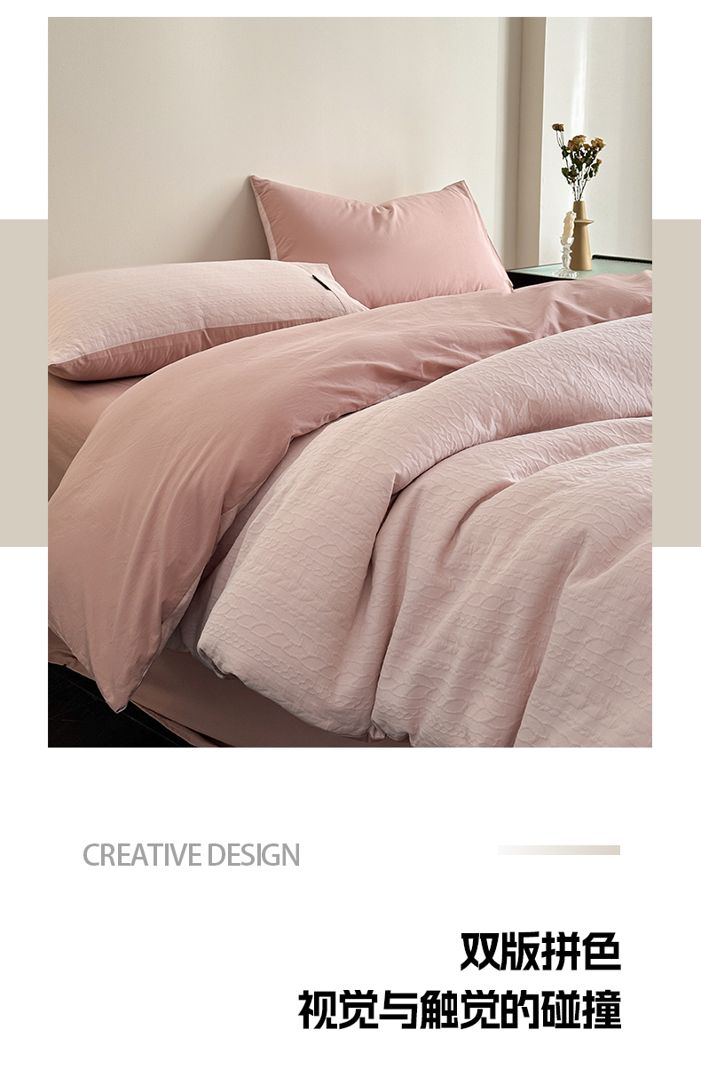 当前位置: 91家纺网 > 商品网购 > 床品套件 > 四件套 > 其它四件套 > 卡巴伦家纺 2025全棉A类空气层三层纱提花四件套 幸福-藕粉