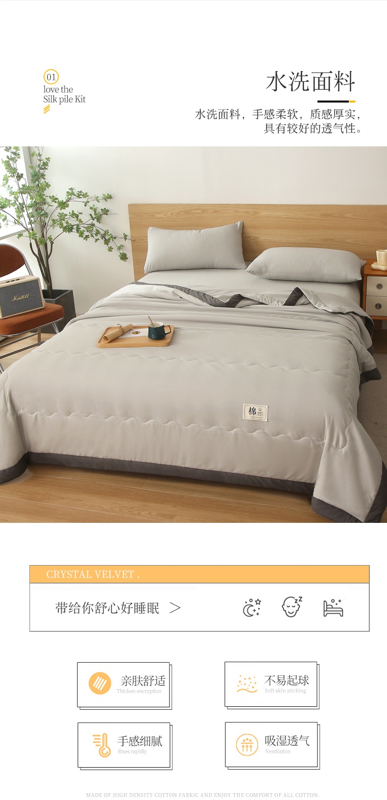 (总)鑫佰利 2025新款纯色水洗棉纱棉花夏被 被子被芯,荷花粉,抹茶绿,曜石黑,云朵白,栀子黄,蓝灰,摩卡灰