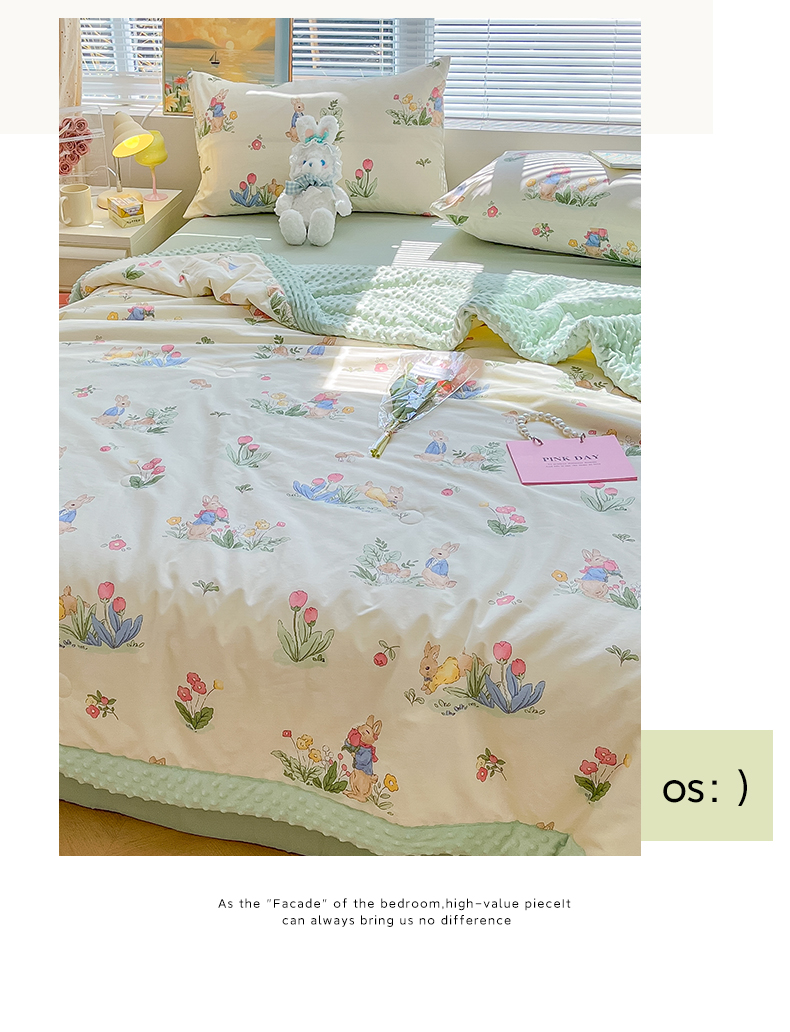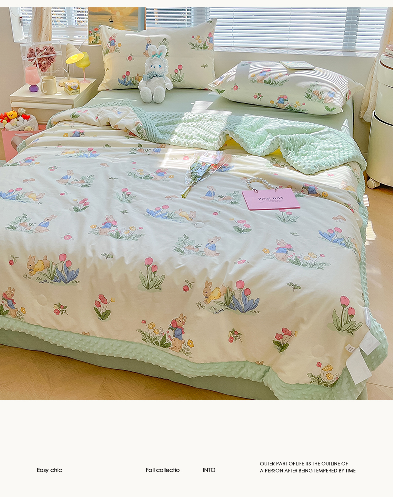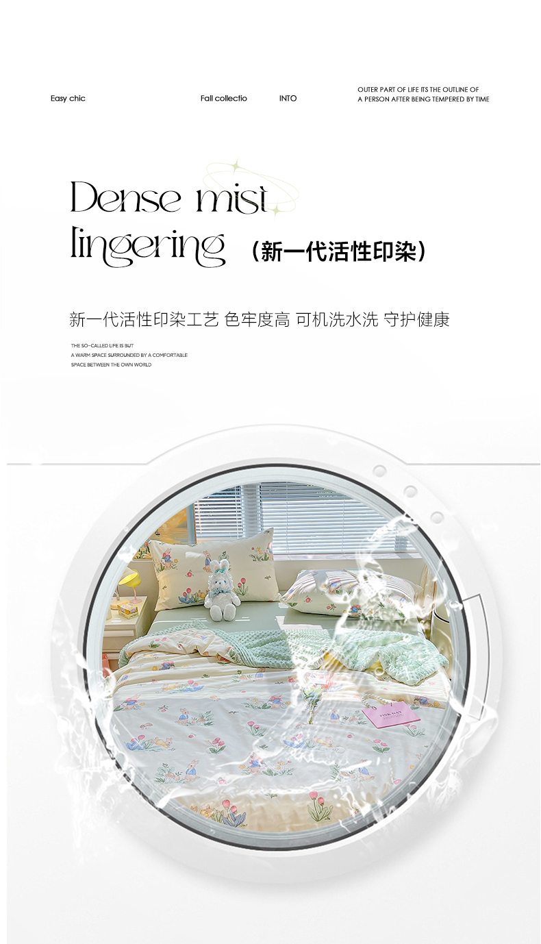 (总)一加一 2025新款全棉色织简约风艾阳绒抗菌被芯,浅兰韵律,桃之夭天,悠然时光