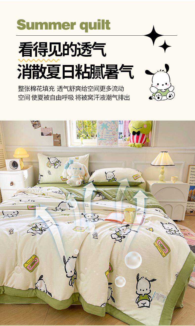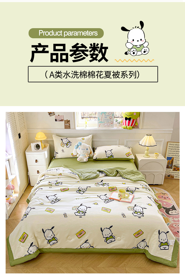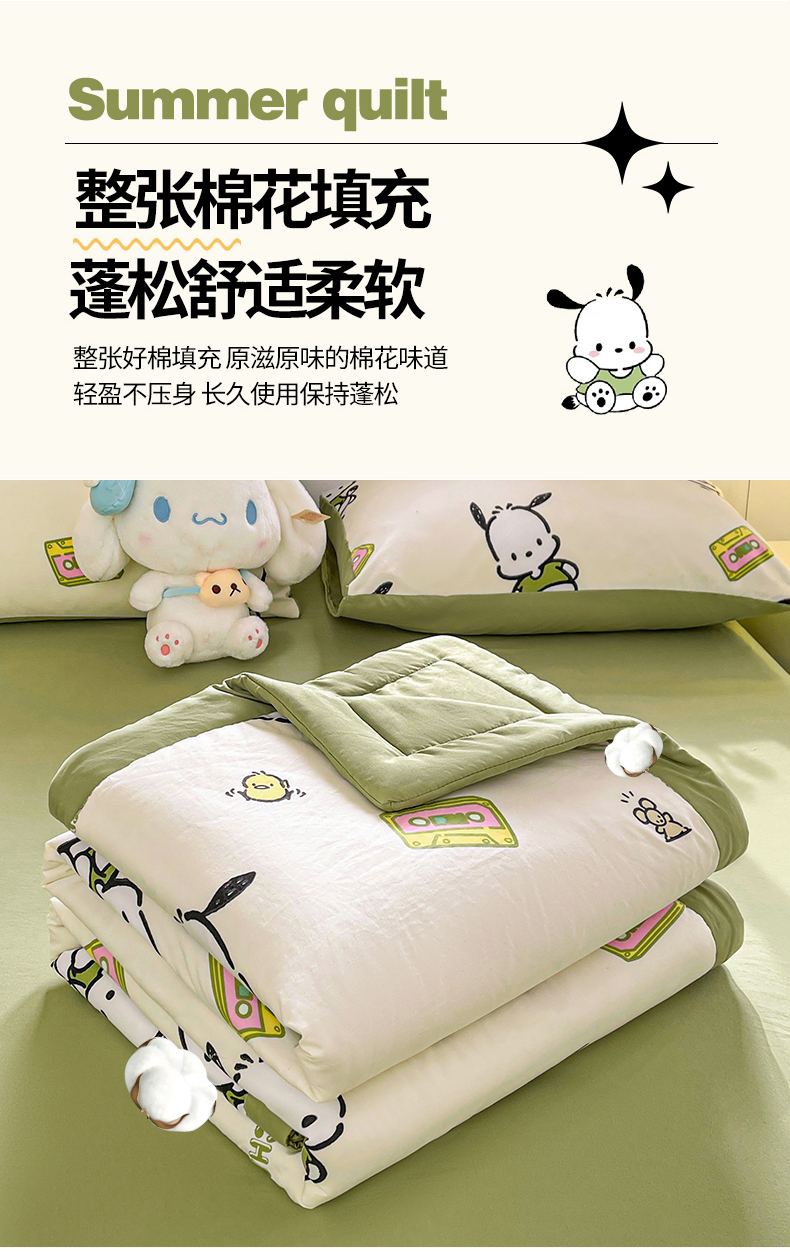 商品名称:晓时候 2025新款正版授权三丽鸥水洗棉夏被新疆棉花被夏凉被空调薄被子 童心帕恰狗