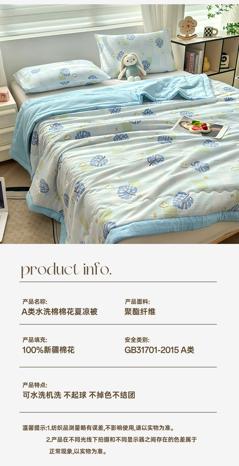 商品名称:鑫佰利 2025新款A类水洗棉印花纯棉花夏被子被芯 清新夏日