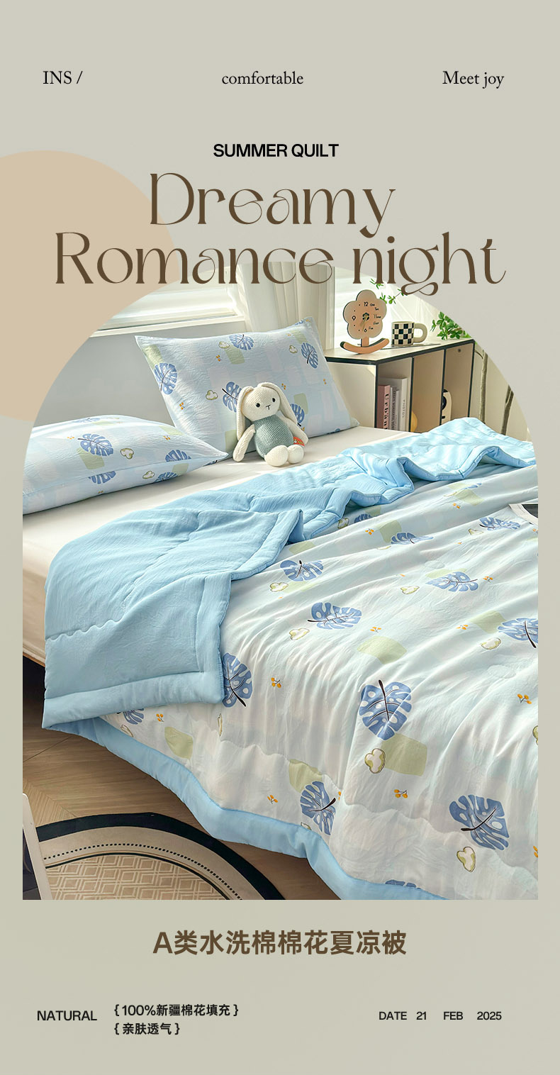 鑫佰利 2025新款A类水洗棉印花纯棉花夏被子被芯 清新夏日