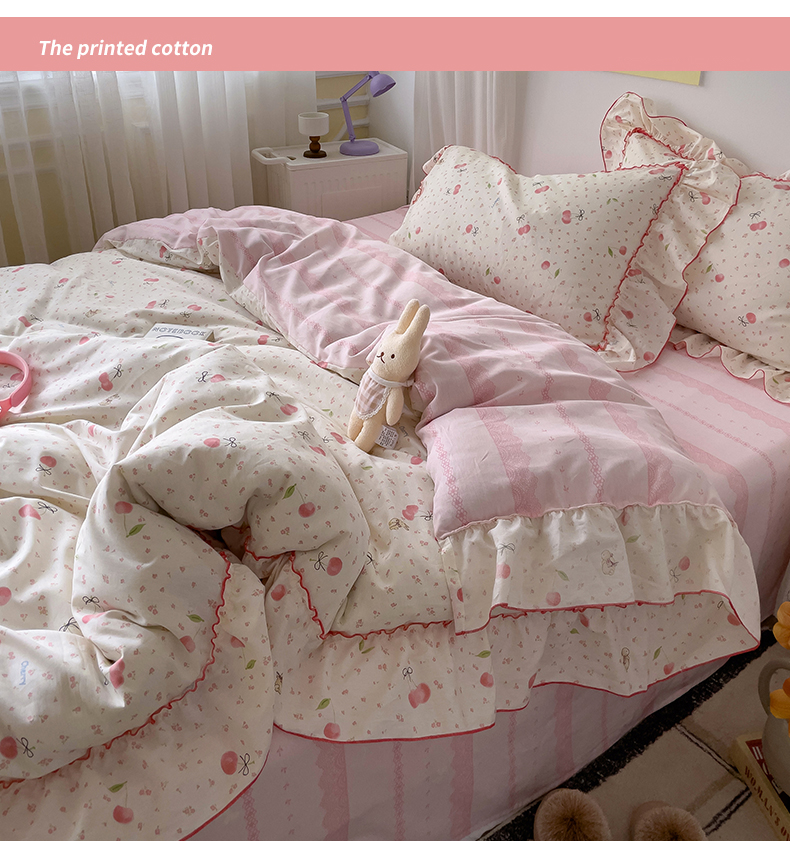 2024新款13372纯棉大版印+绣小清新款四件套 草莓之恋,草莓之恋
