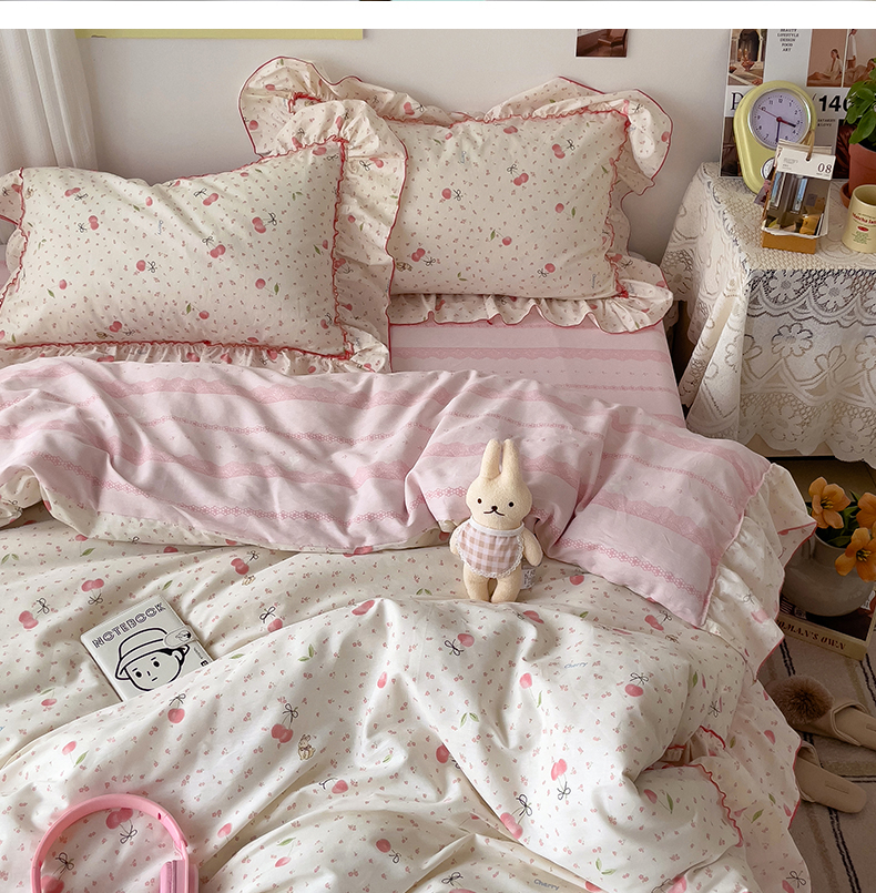 (总)乐童家纺 2025新款纯棉13070小清新花边四件套系列一