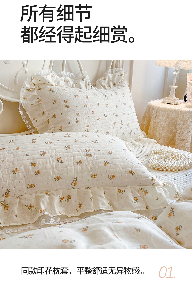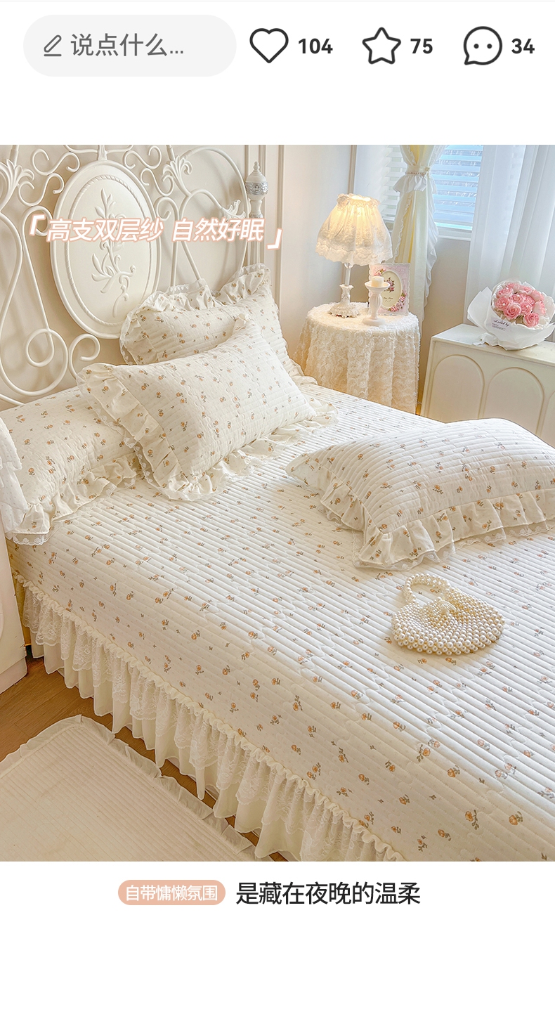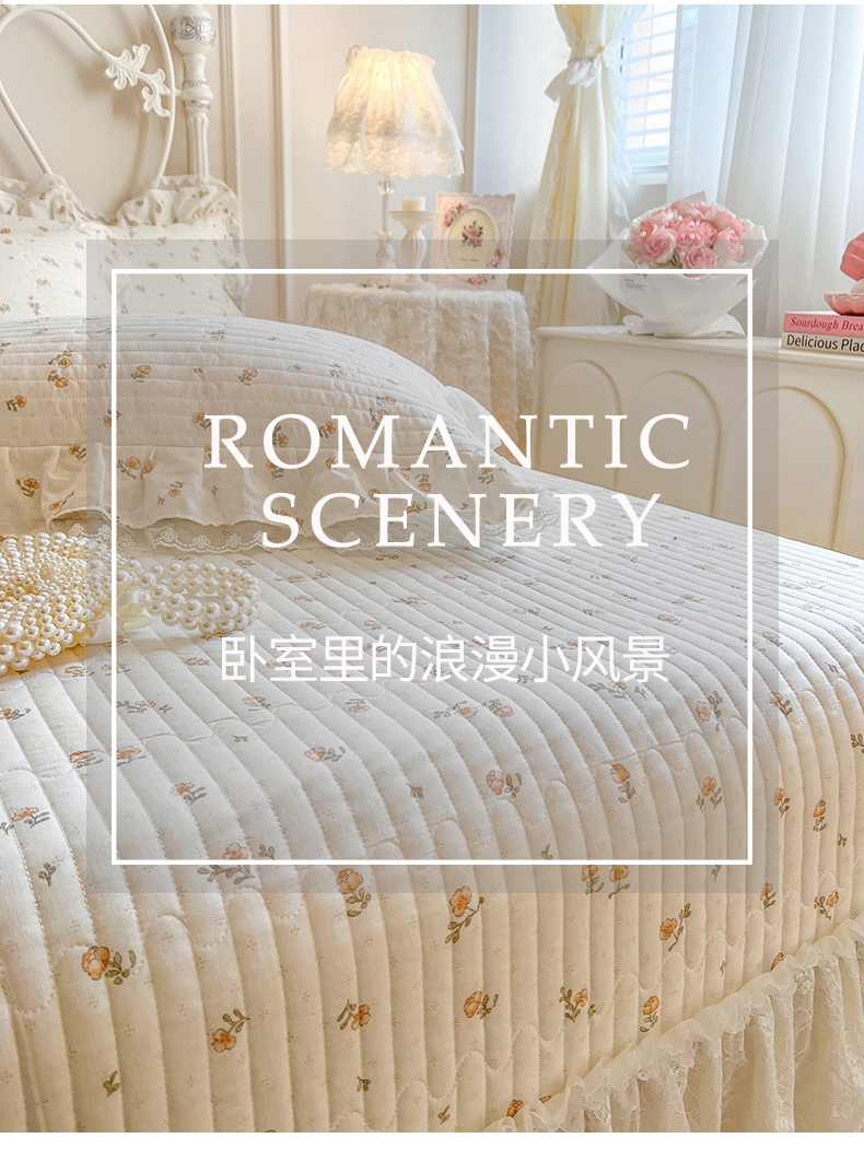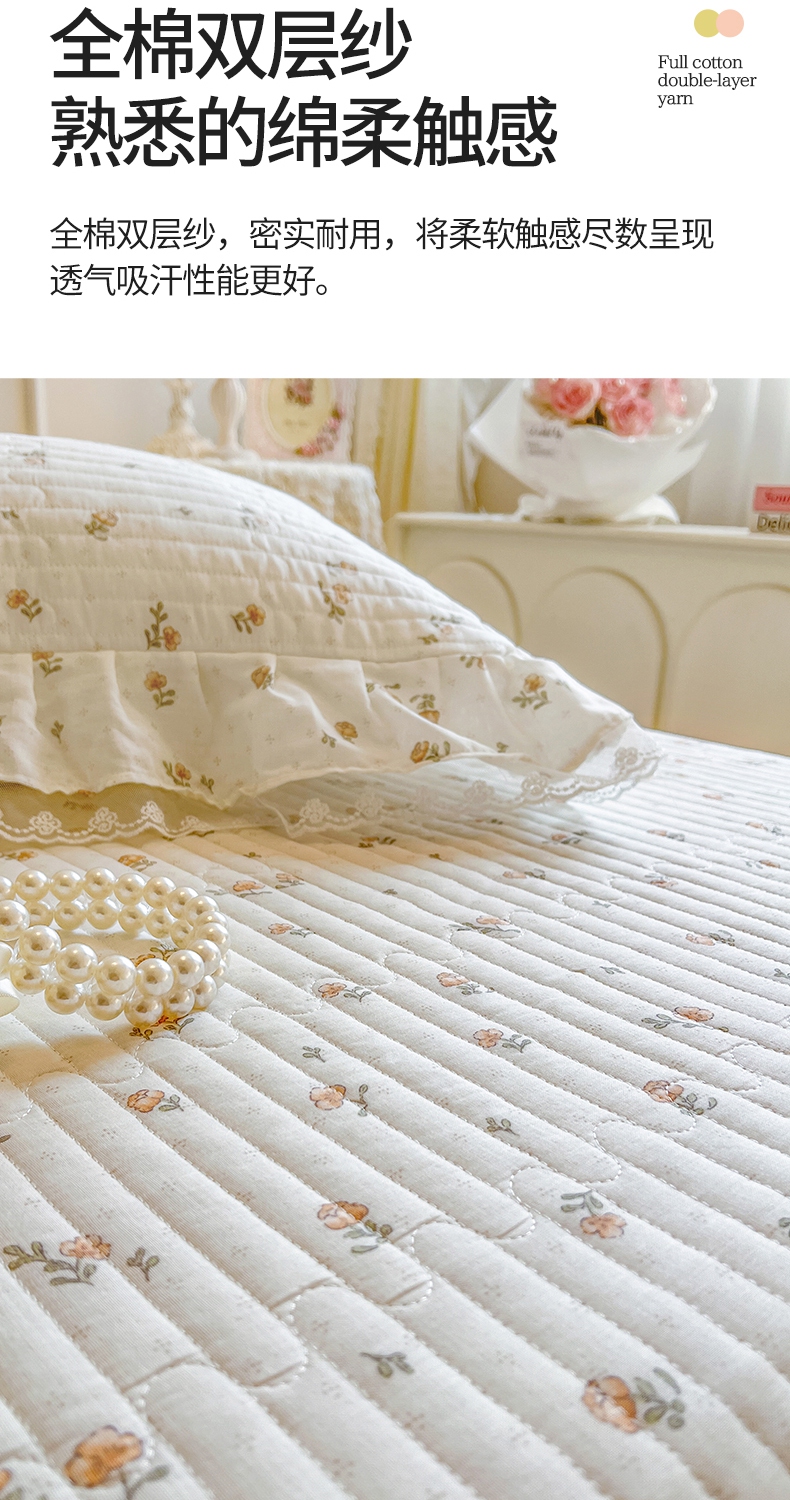 商品名称:麒豆豆 2025新款全棉印花双层纱床盖 秋之花