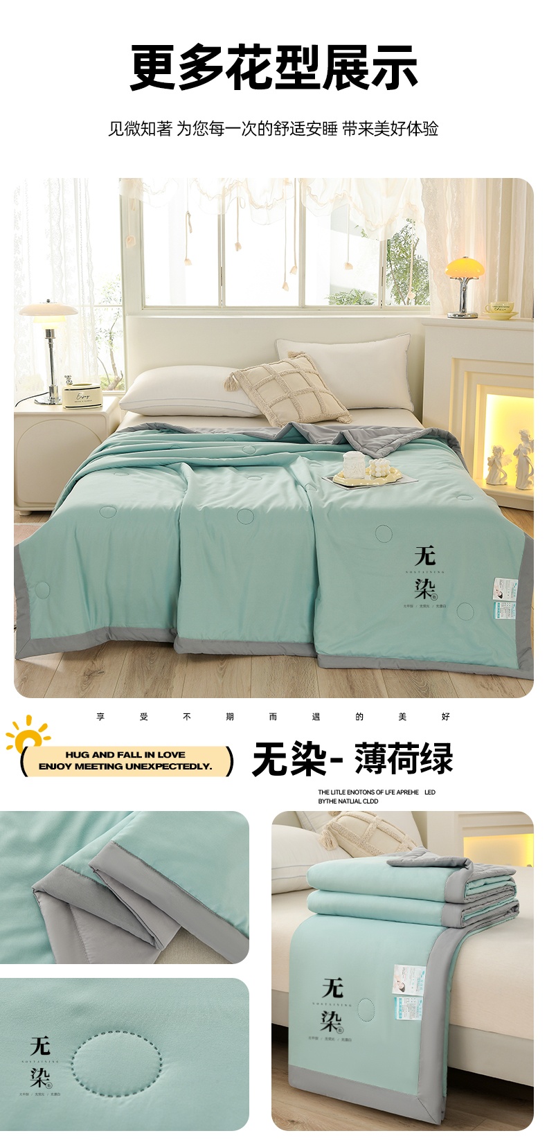 (总)易展家居 2025年新款水洗棉纯色夏被,薄荷绿,典雅白,高级灰,樱花粉