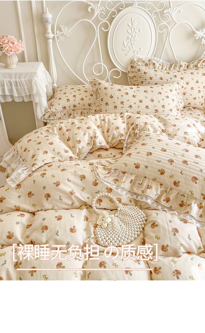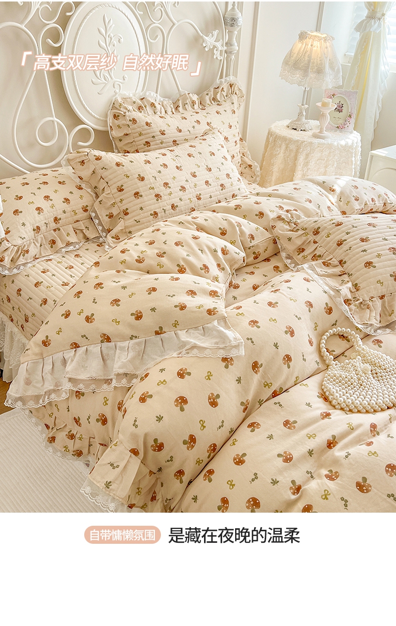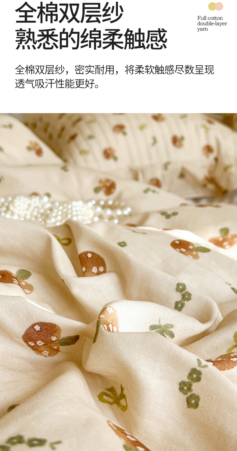 商品名称:网红馆(ck家纺) 2025新款全棉印花双层纱床盖四件套 蘑菇力