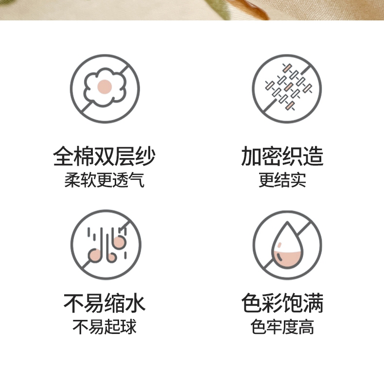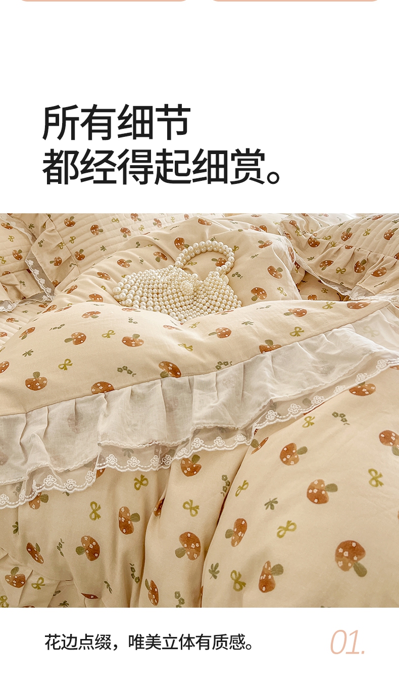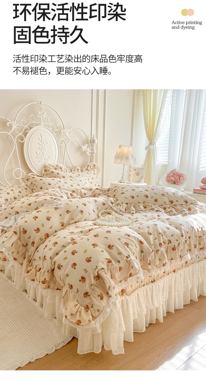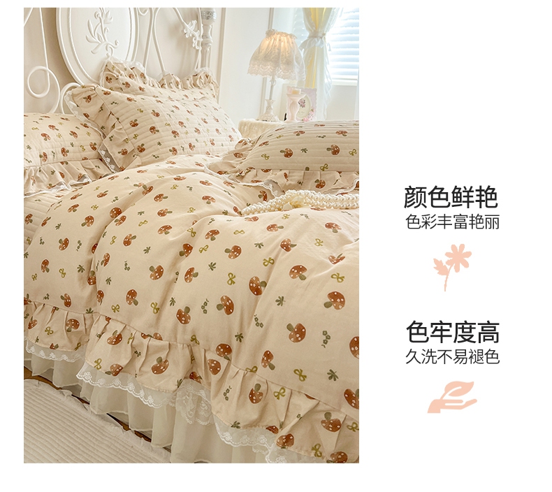 商品名称:网红馆(ck家纺) 2025新款全棉印花双层纱床盖四件套 蘑菇力
