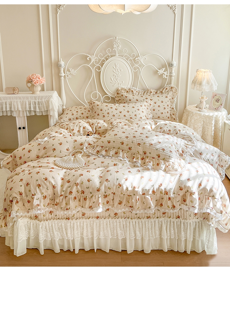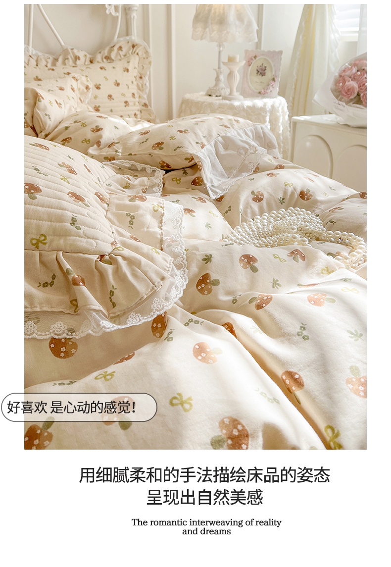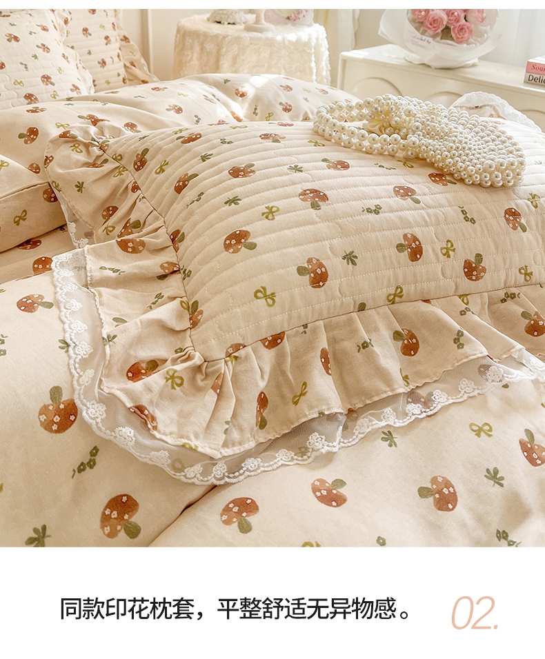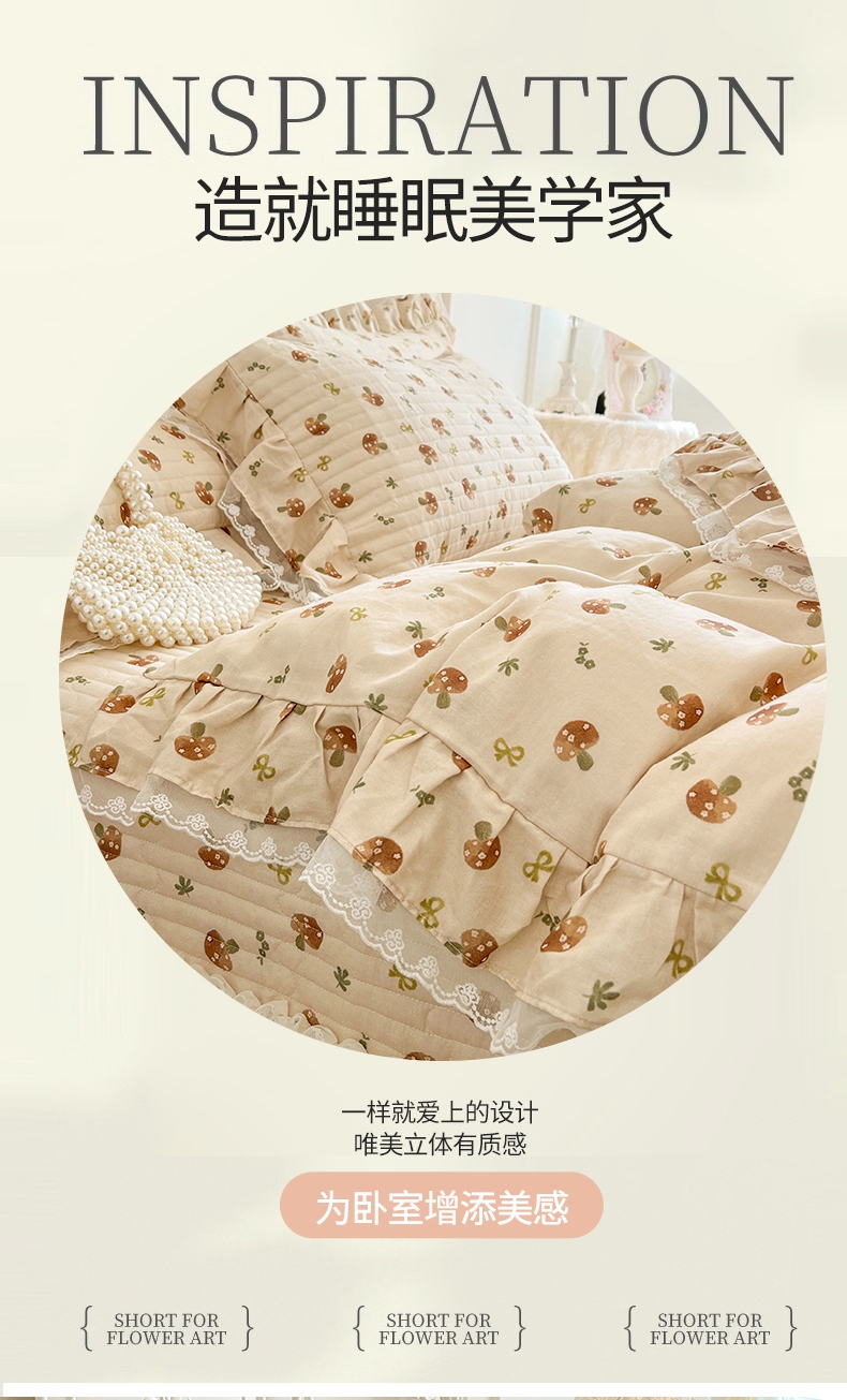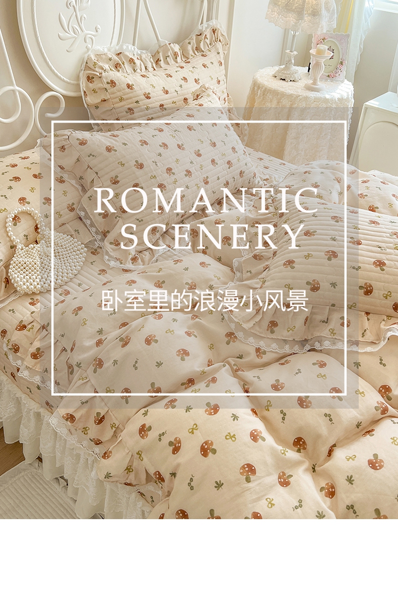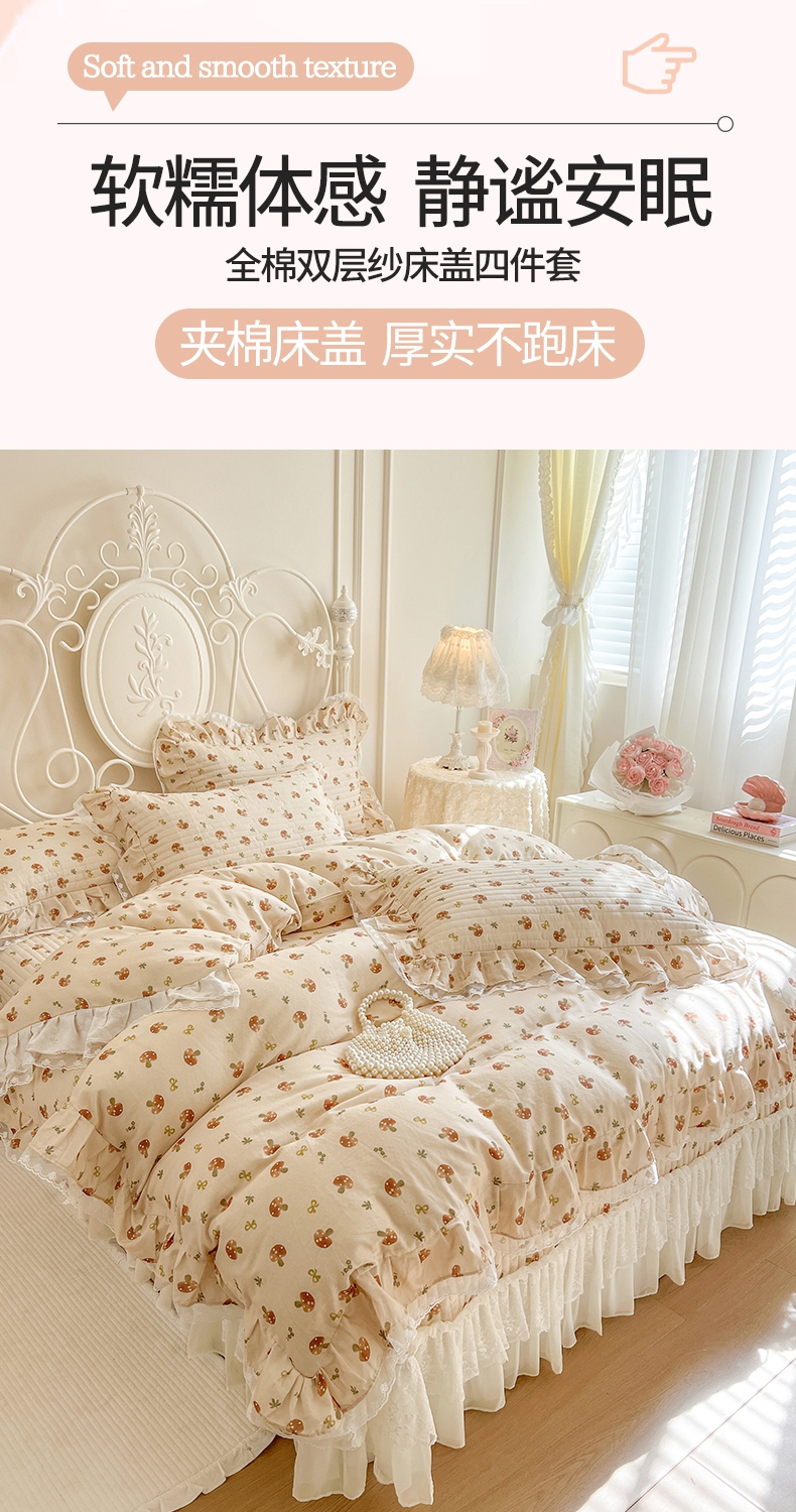 网红馆(ck家纺) 2025新款全棉印花双层纱床盖四件套 蘑菇力