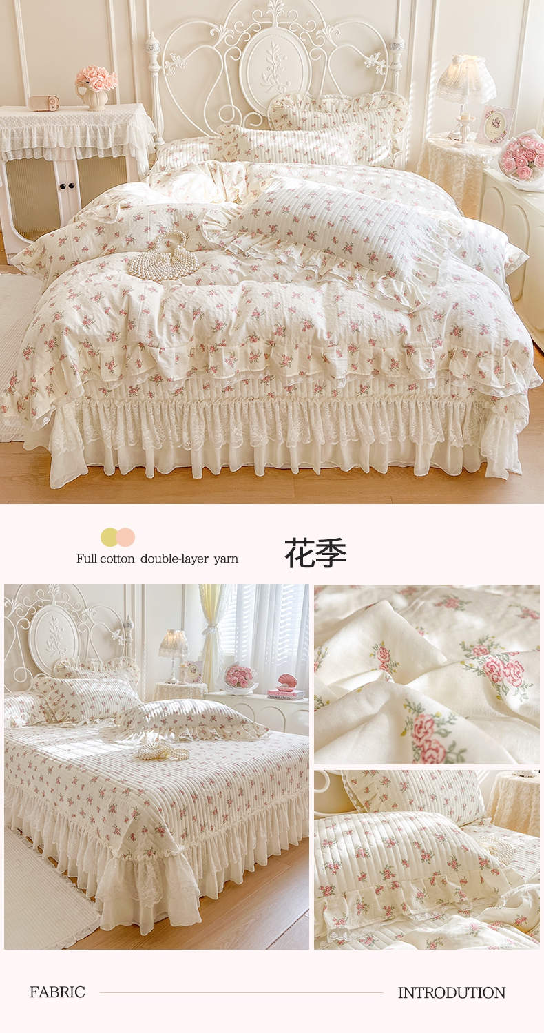 (总)网红馆(ck家纺) 2026新款全棉蕾丝花边床裙款床笠晨暮花间系列,绯红,粉色,麦绿,米色,浅紫,雾蓝