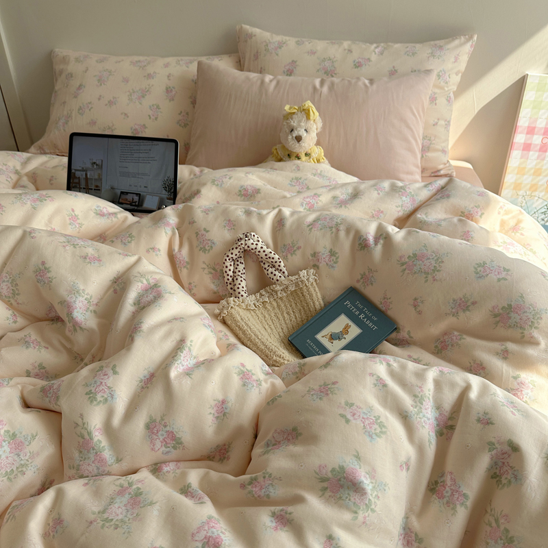 商品名称:桃喜 2025新款春夏全棉双层纱碎花系列四件套 椿屿