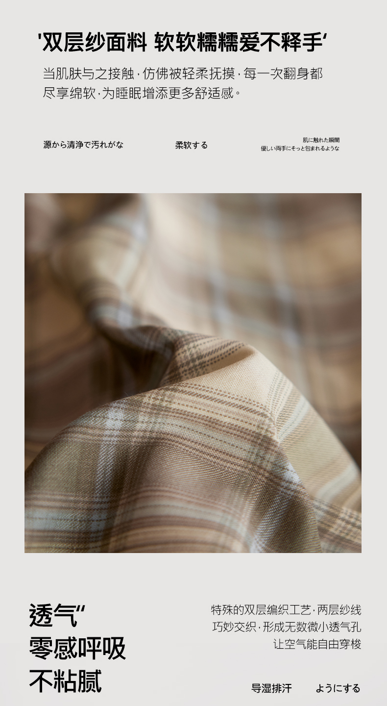 (总)安莱生活 2025 全棉双层纱苏格兰格纹系列四件套