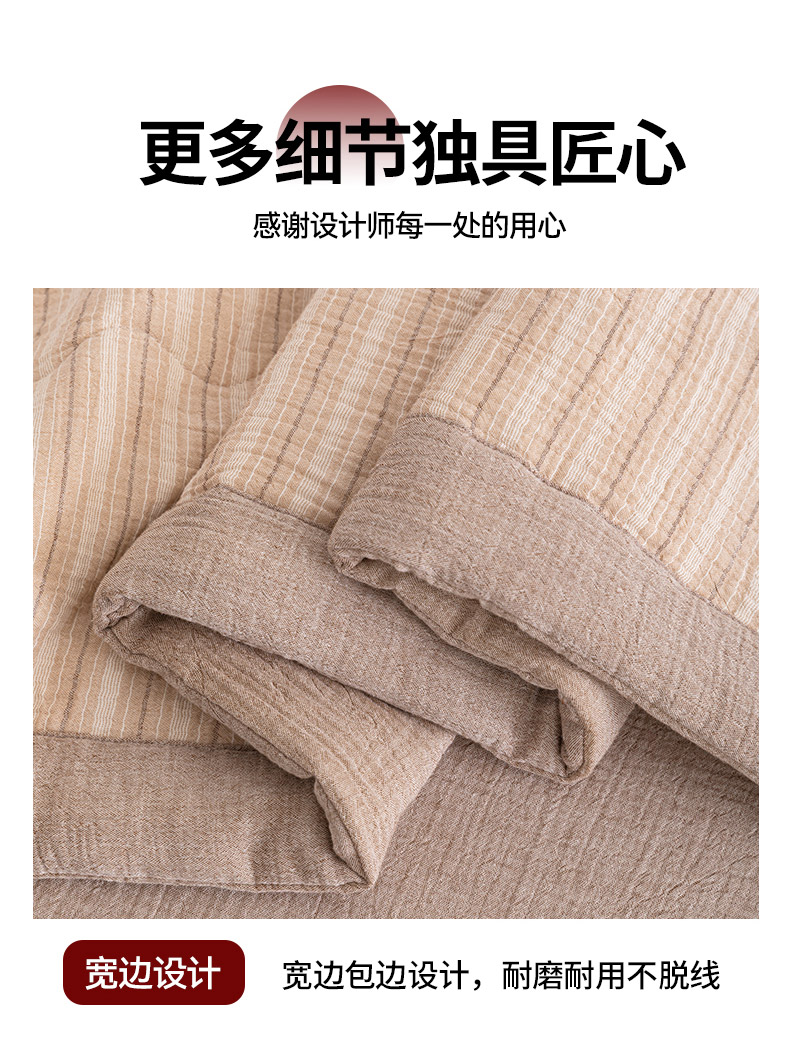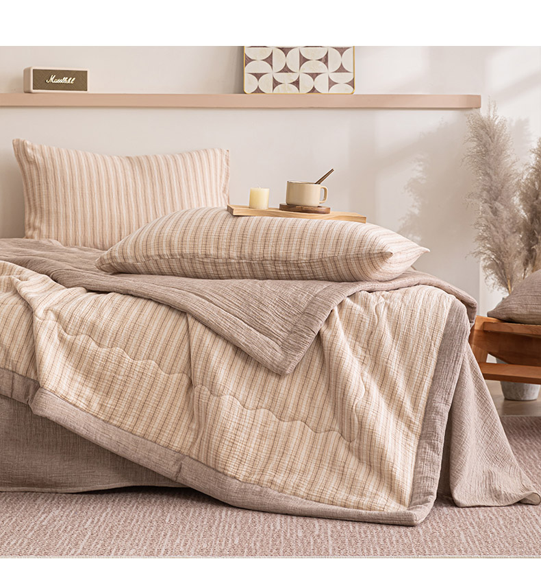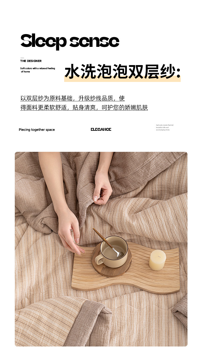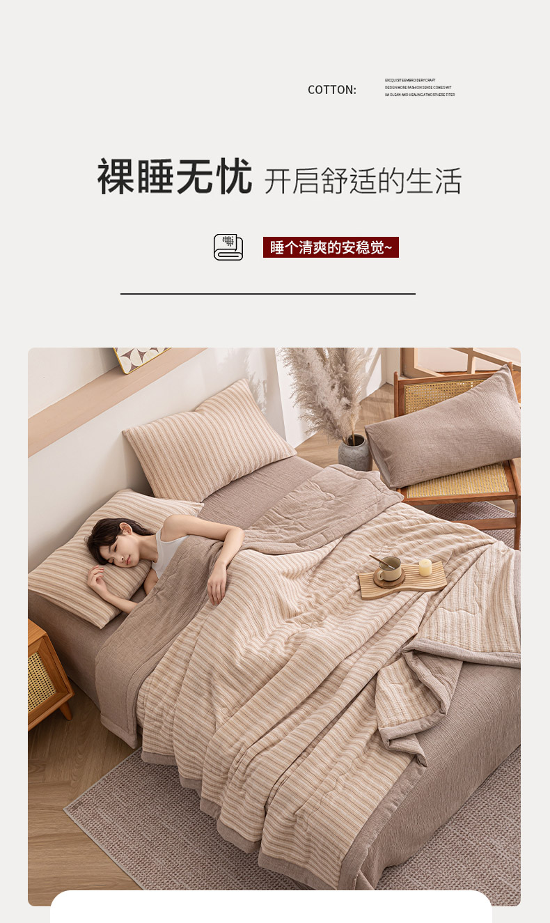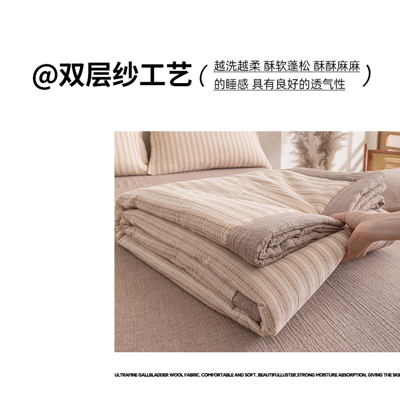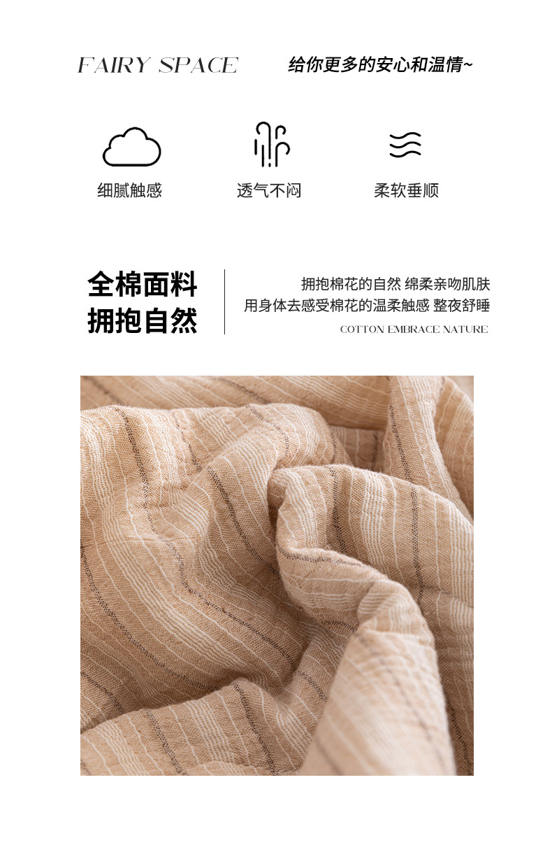 商品名称:吾诺 2025 全棉色织泡泡棉双层纱夏被大豆夏被全棉夏被四件套被子被芯 浅咖条