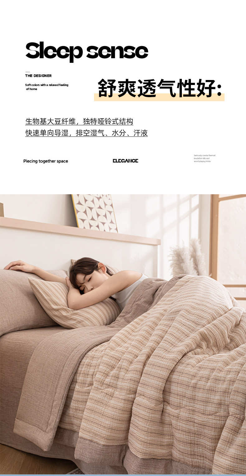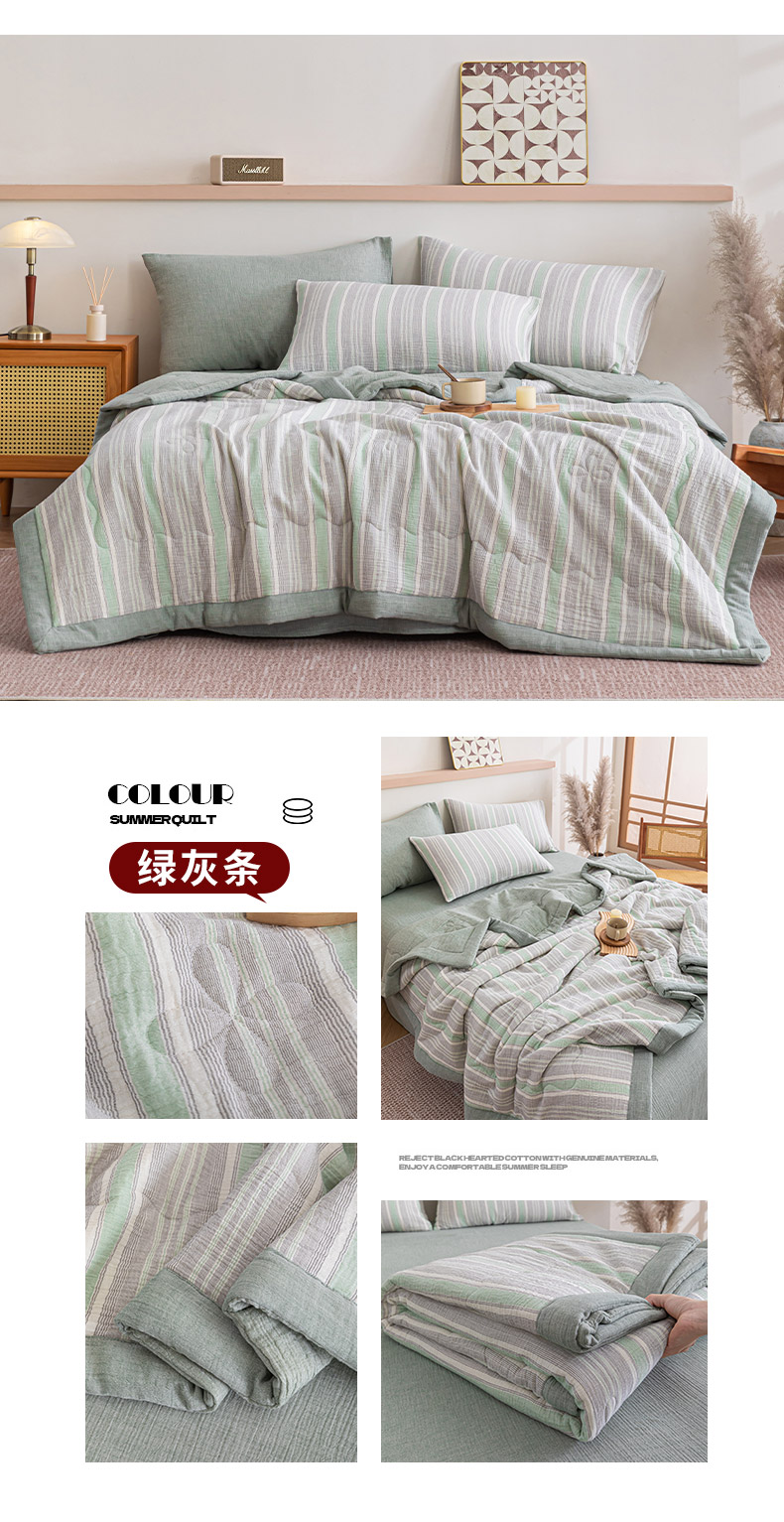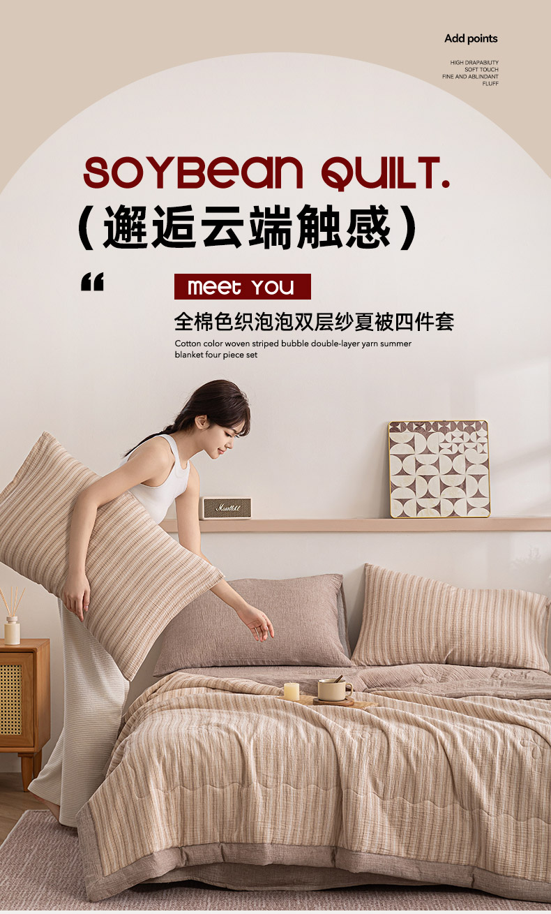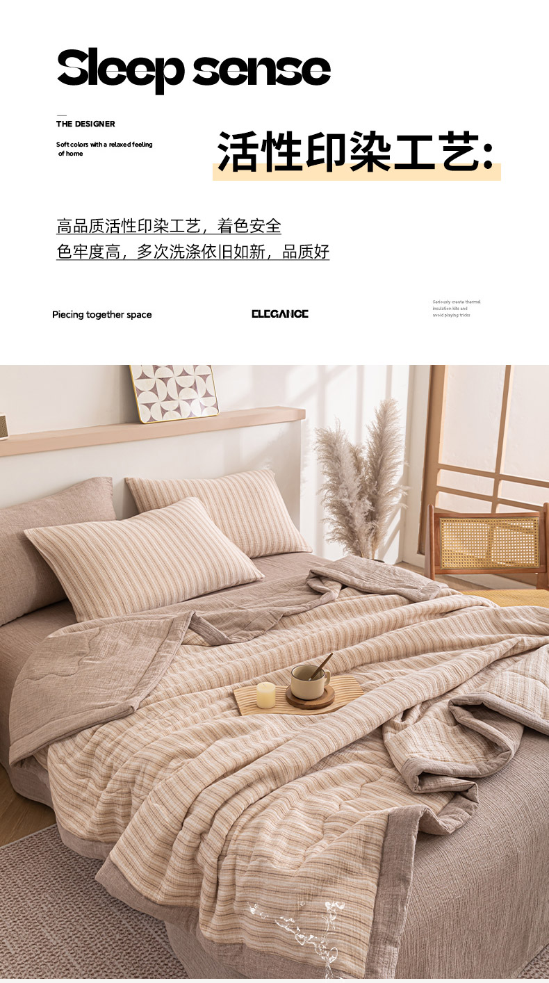 商品名称:吾诺 2025 全棉色织泡泡棉双层纱夏被大豆夏被全棉夏被四件套被子被芯 浅咖条