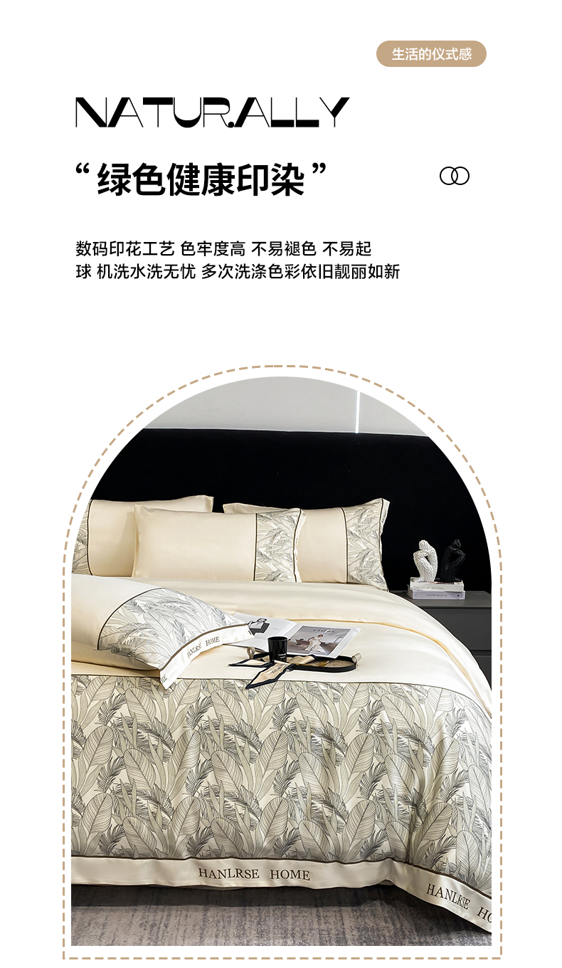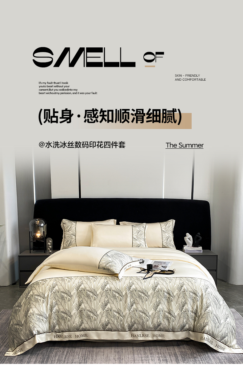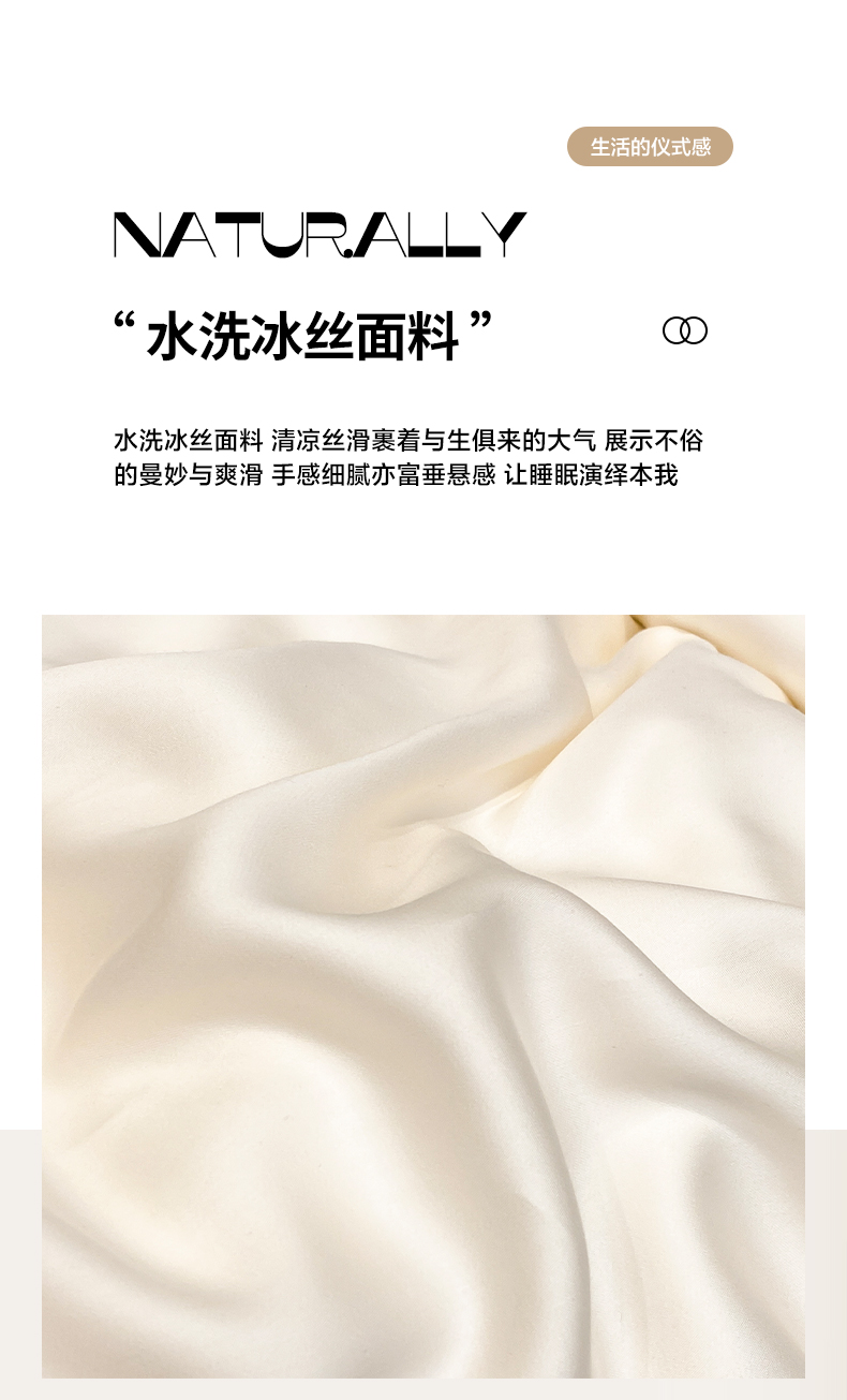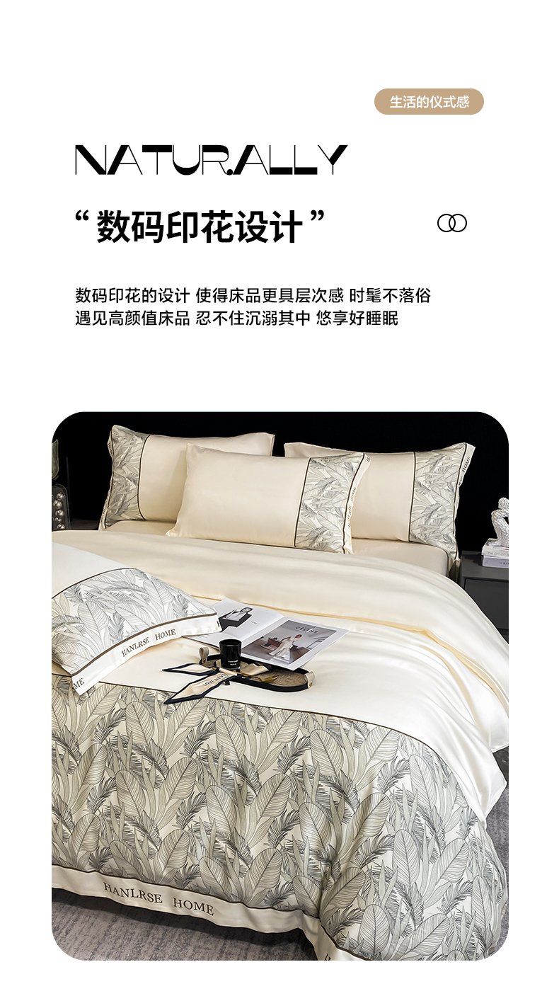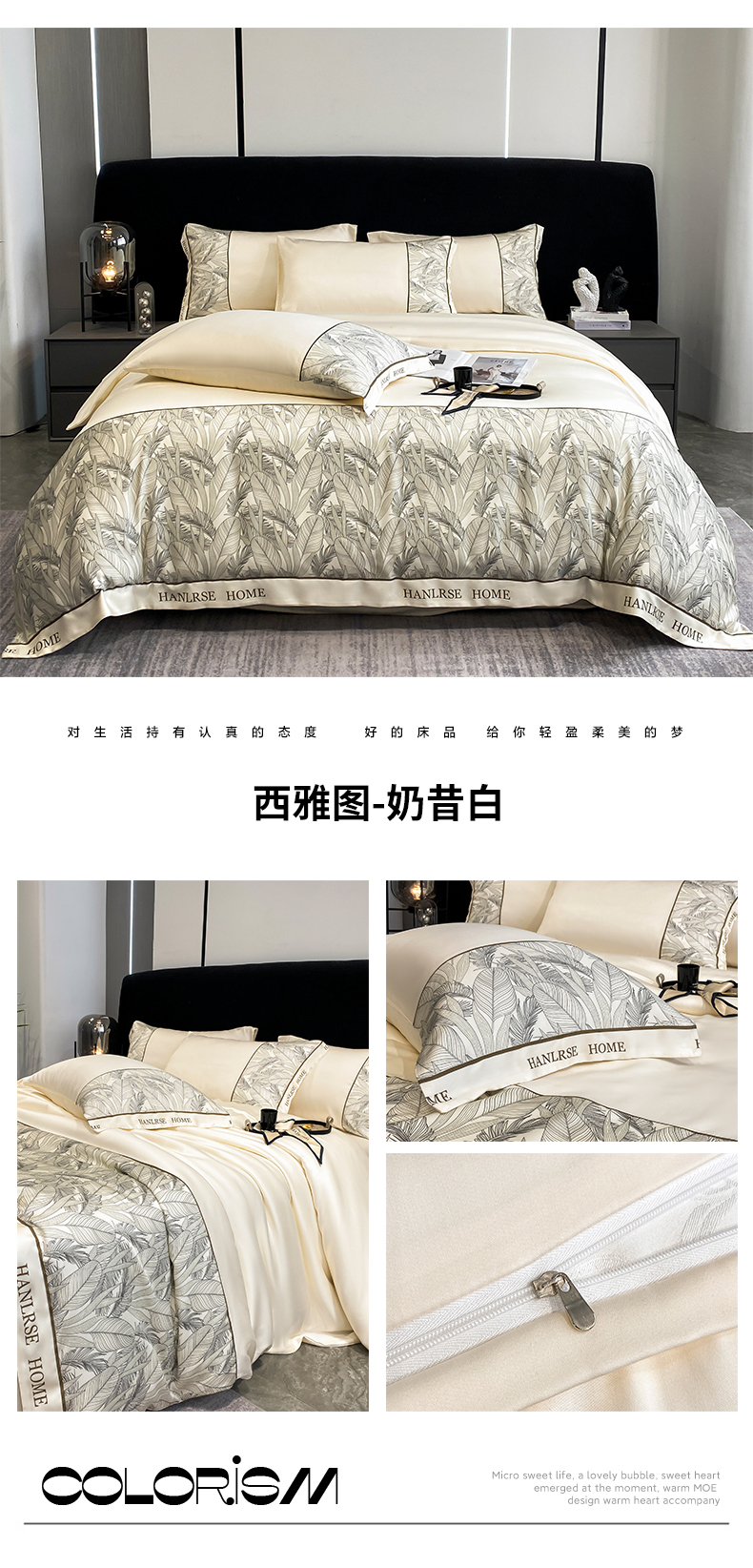商品名称:花愿(原花纪) 2025新款水洗冰丝印花四件套 西雅图 奶昔白