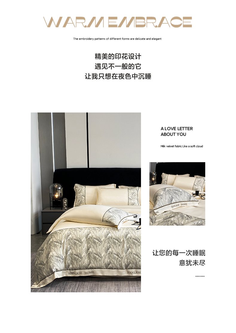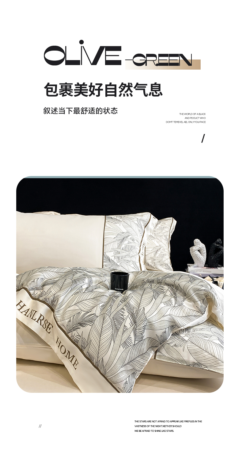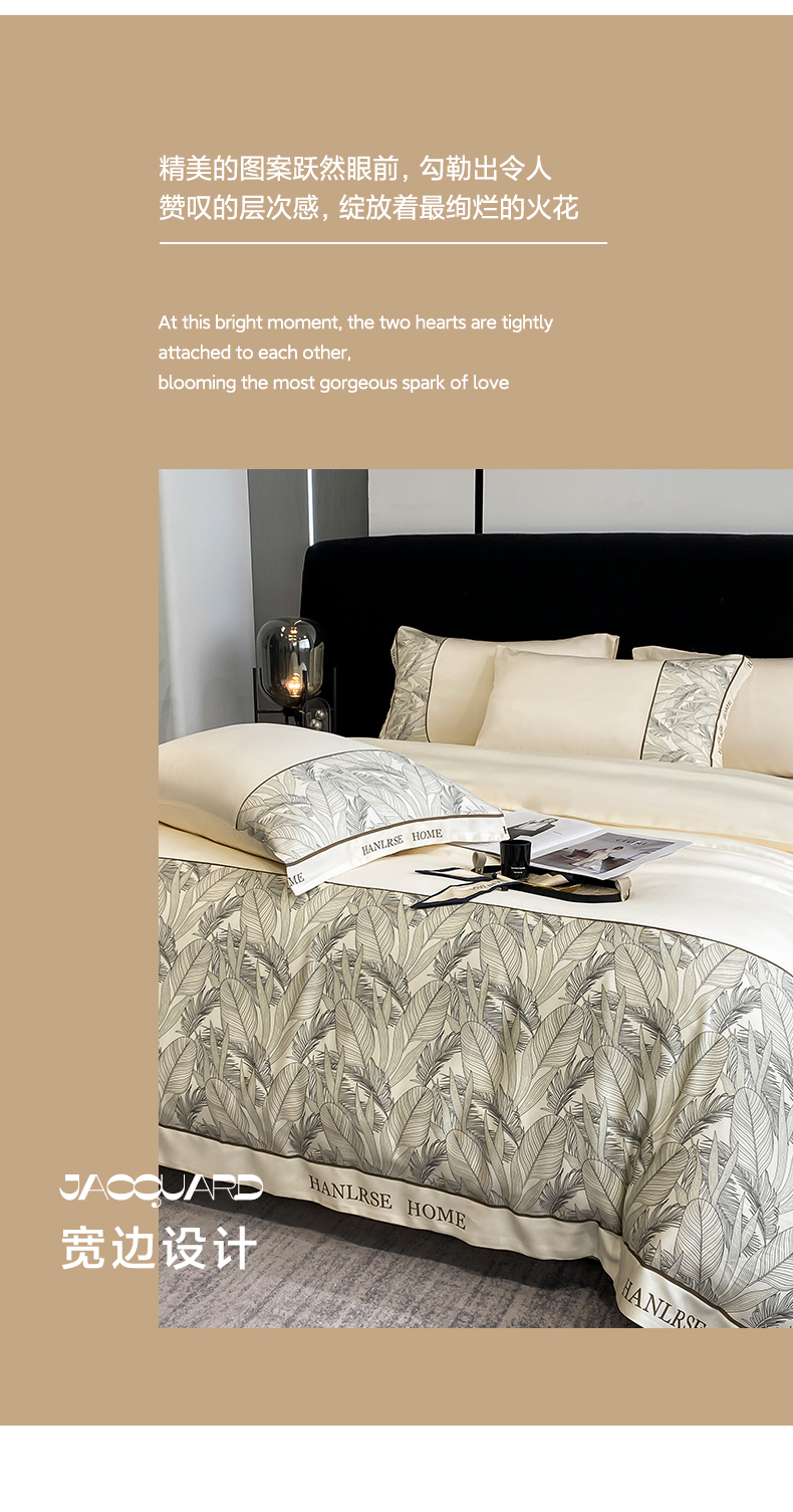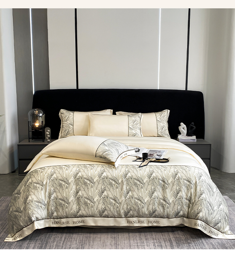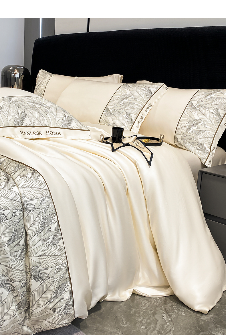 商品名称:花愿(原花纪) 2025新款水洗冰丝印花四件套 西雅图 奶昔白