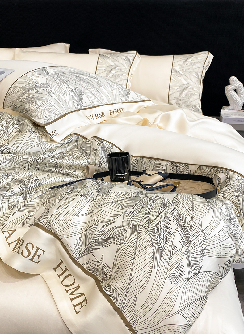 花愿(原花纪) 2025新款水洗冰丝印花四件套 西雅图 奶昔白