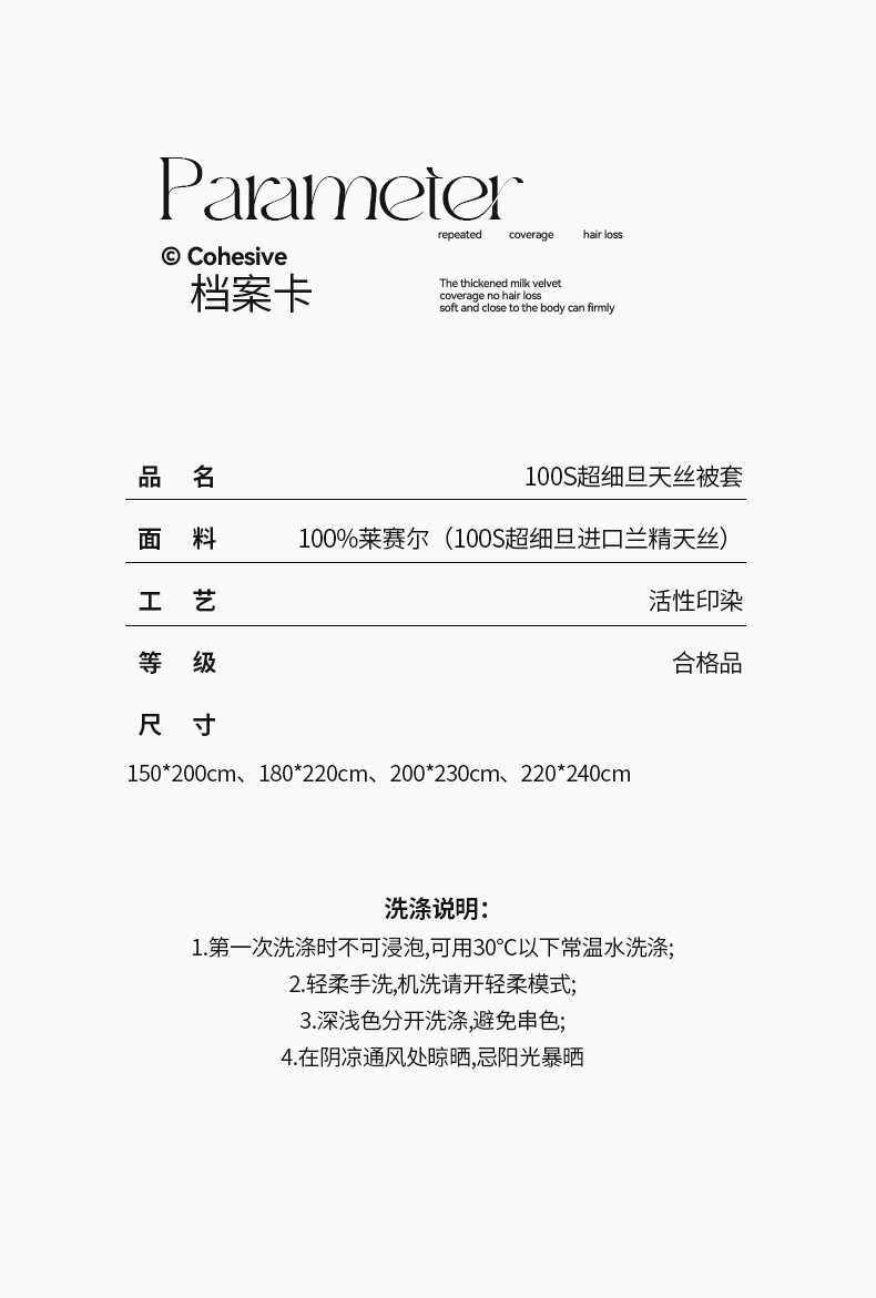 (总)简纯主义 2025新款A类100S超细旦天丝简约纯色单品被套,经典灰,暮蓝,柔霜粉,杏仁白,云醉了,紫砂灰