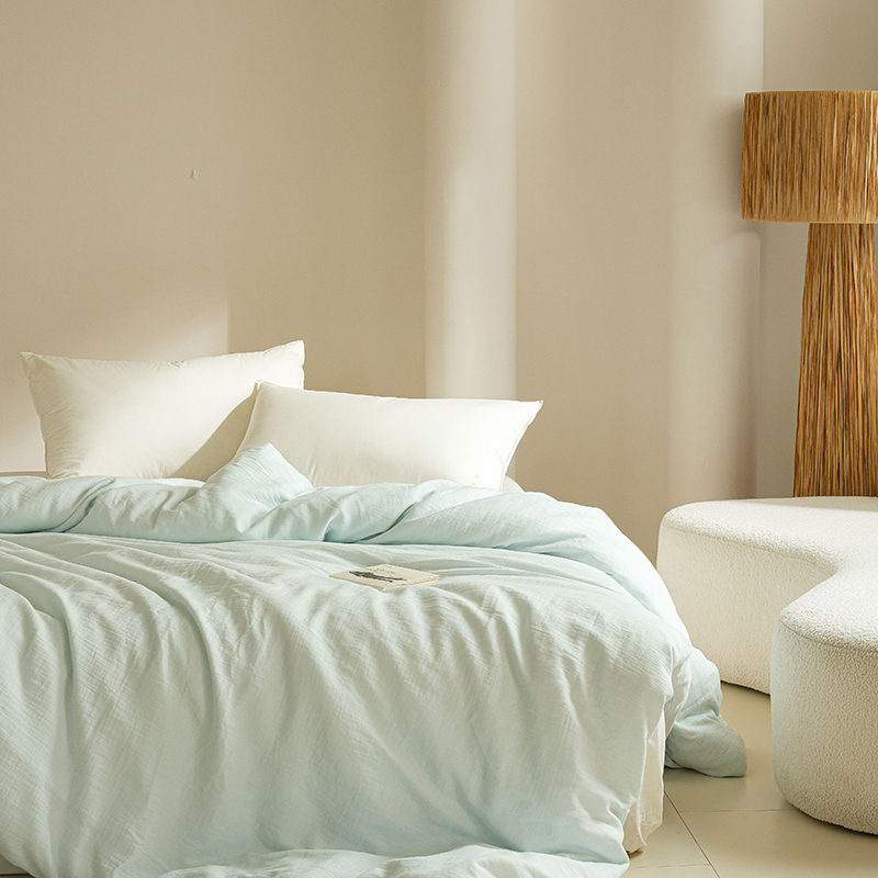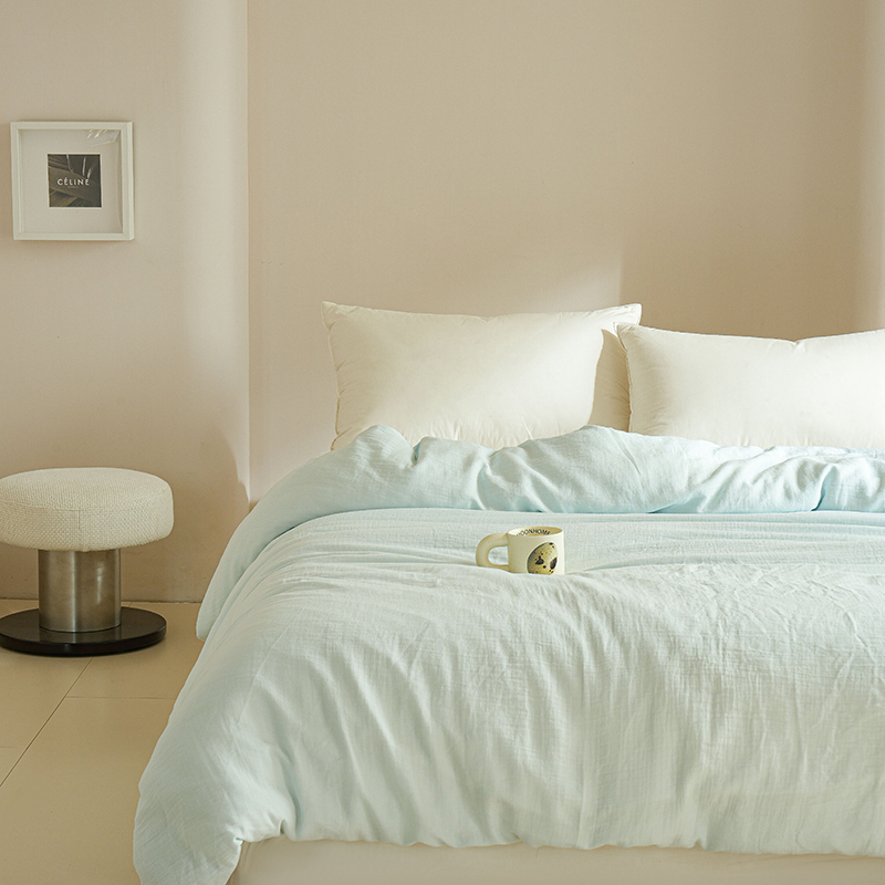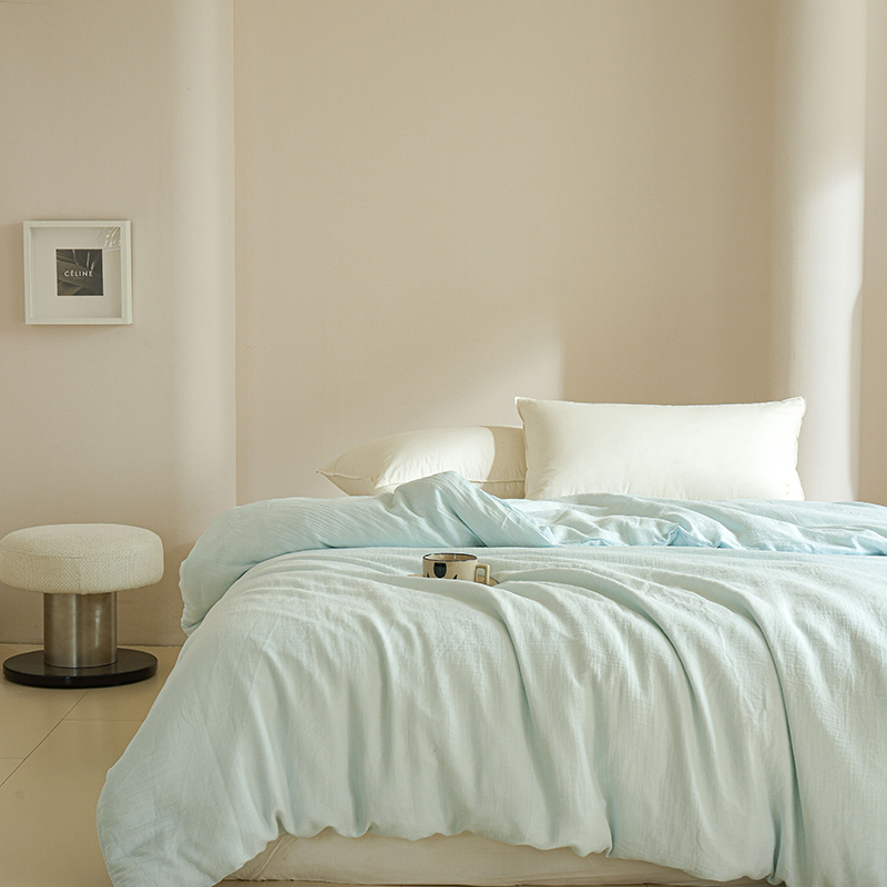 商品名称:简纯主义 2025新款全棉有机雾感纱双层皱皱纱系列单被套 蓝云