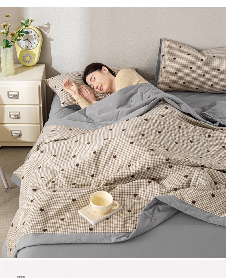 慕木家纺 2025新款A类水洗棉印花新疆棉花夏被空调被(抽空压缩可供跨境) 倾心咖格