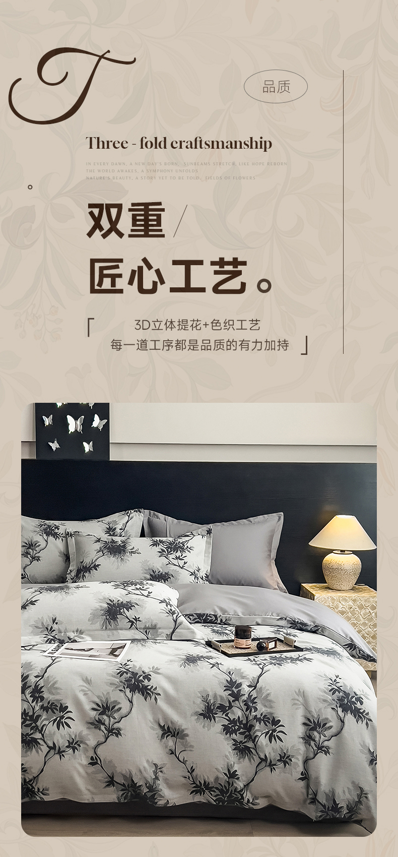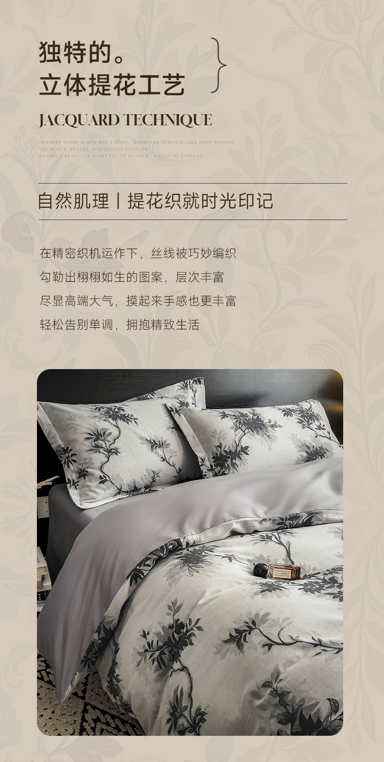 倾慕家纺 2025新款60S提花全棉单品被套 南枝蓝