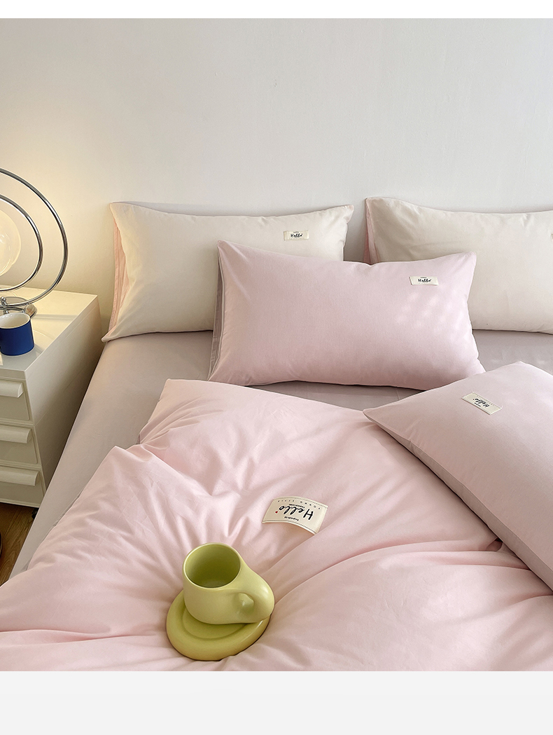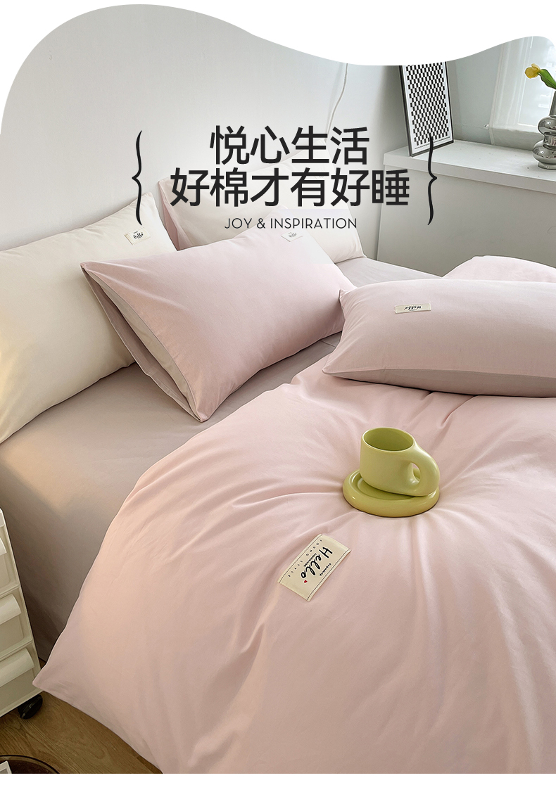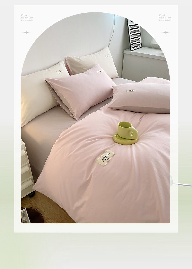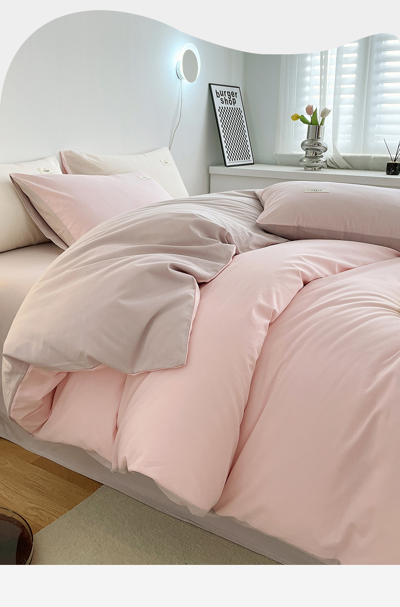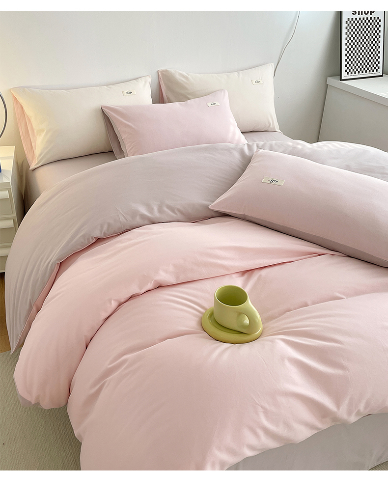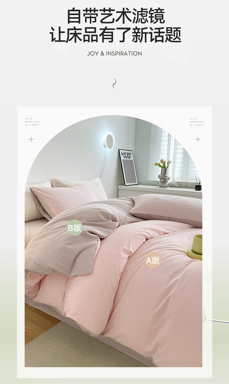 当前位置: 91家纺网 > 商品网购 > 床品套件 > 四件套 > 全棉普通四件套 > 798家纺 2026新款全棉13070纯色双拼系列四件套场景二 浅粉+豆沙