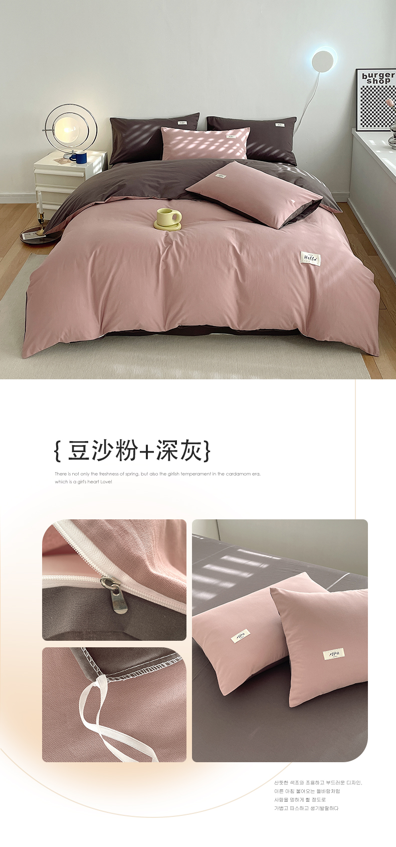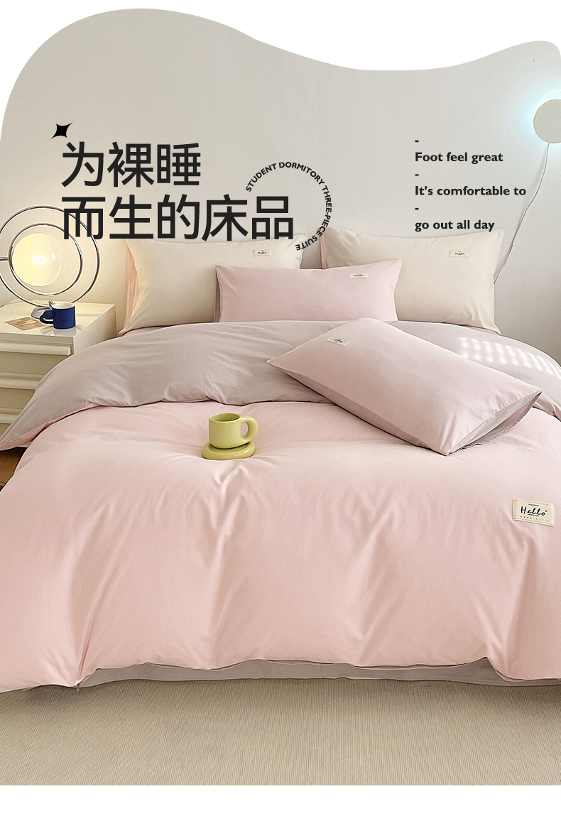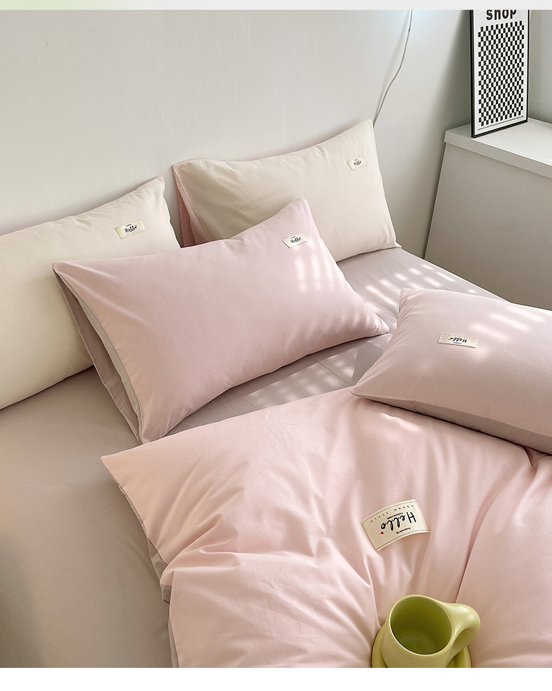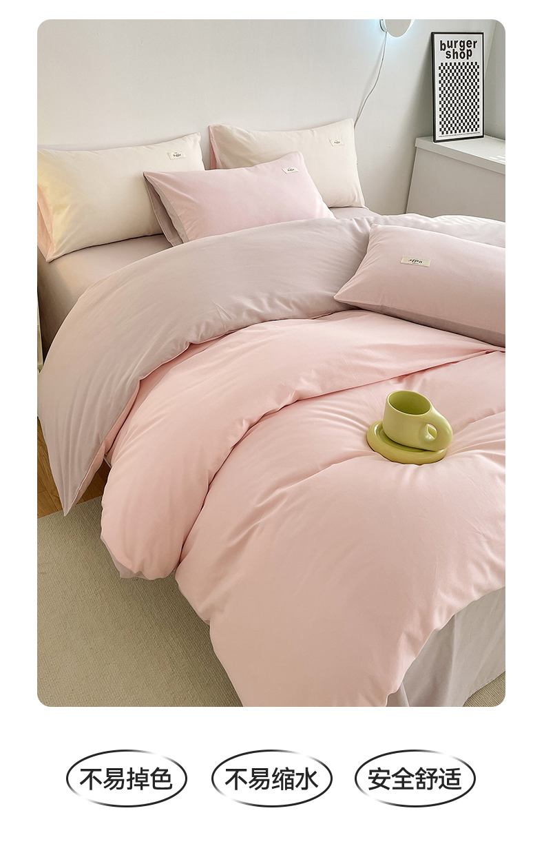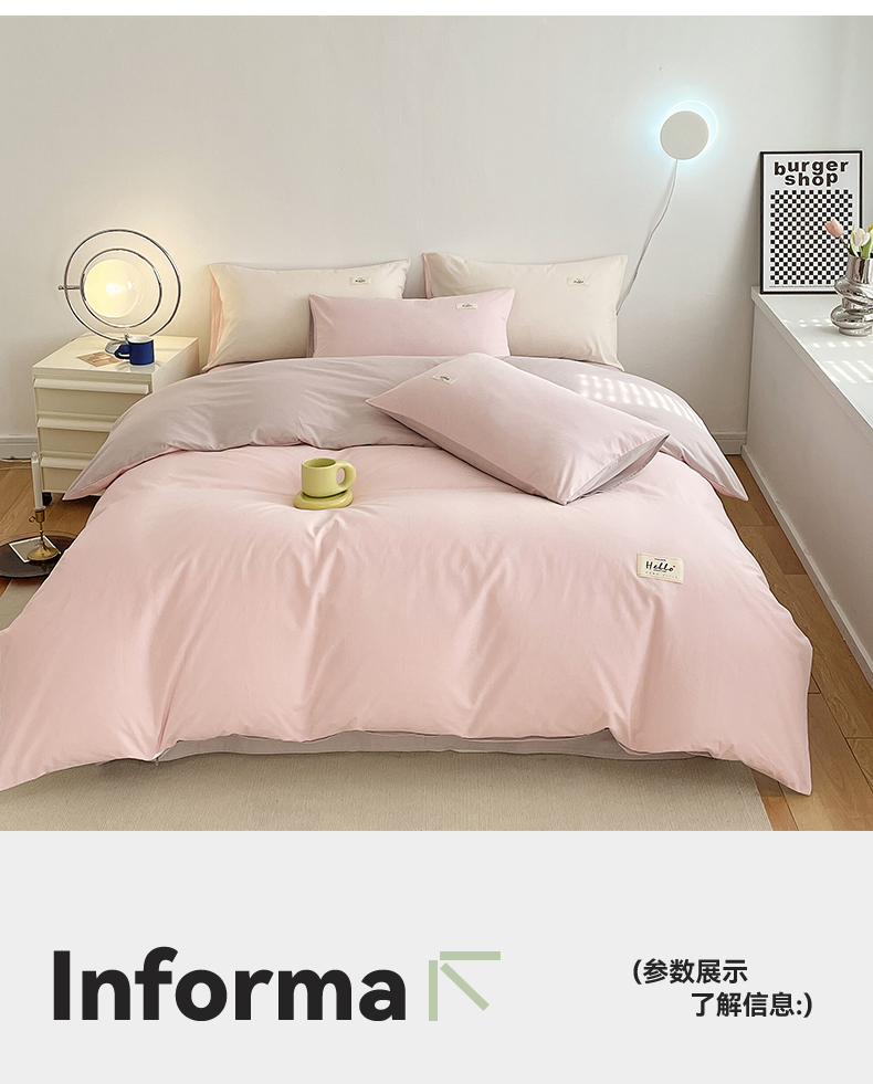 当前位置: 91家纺网 > 商品网购 > 床品套件 > 四件套 > 全棉普通四件套 > 798家纺 2026新款全棉13070纯色双拼系列四件套场景二 浅粉+豆沙