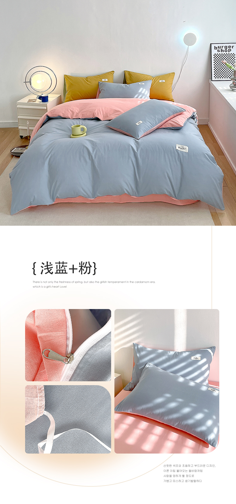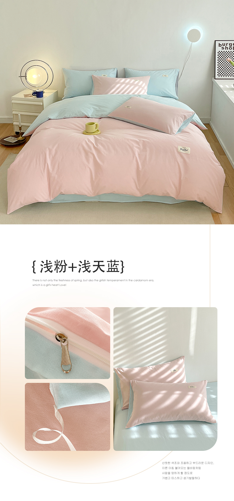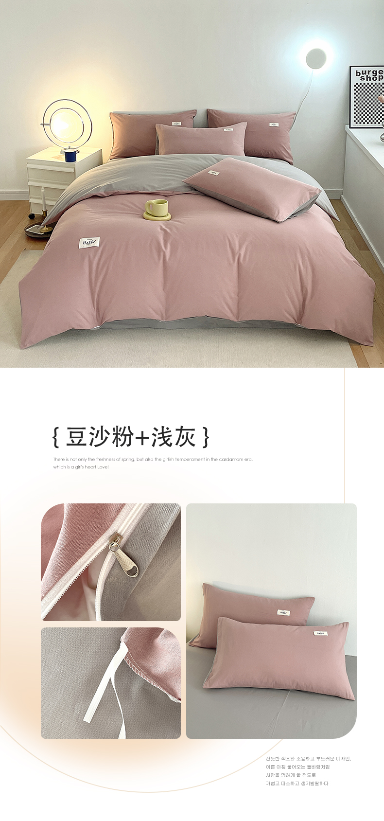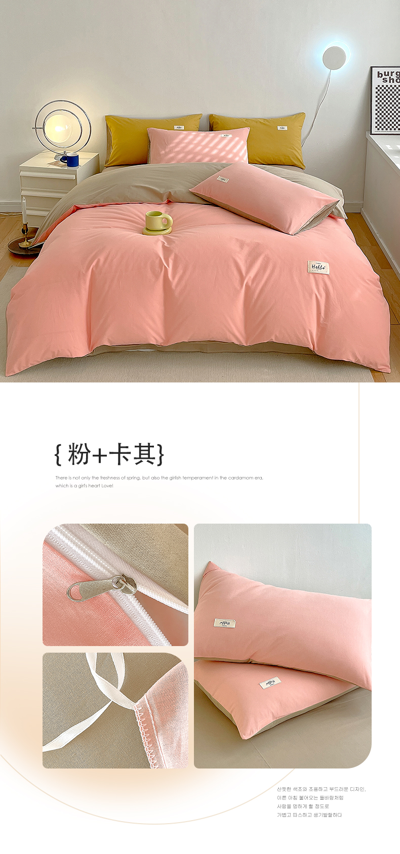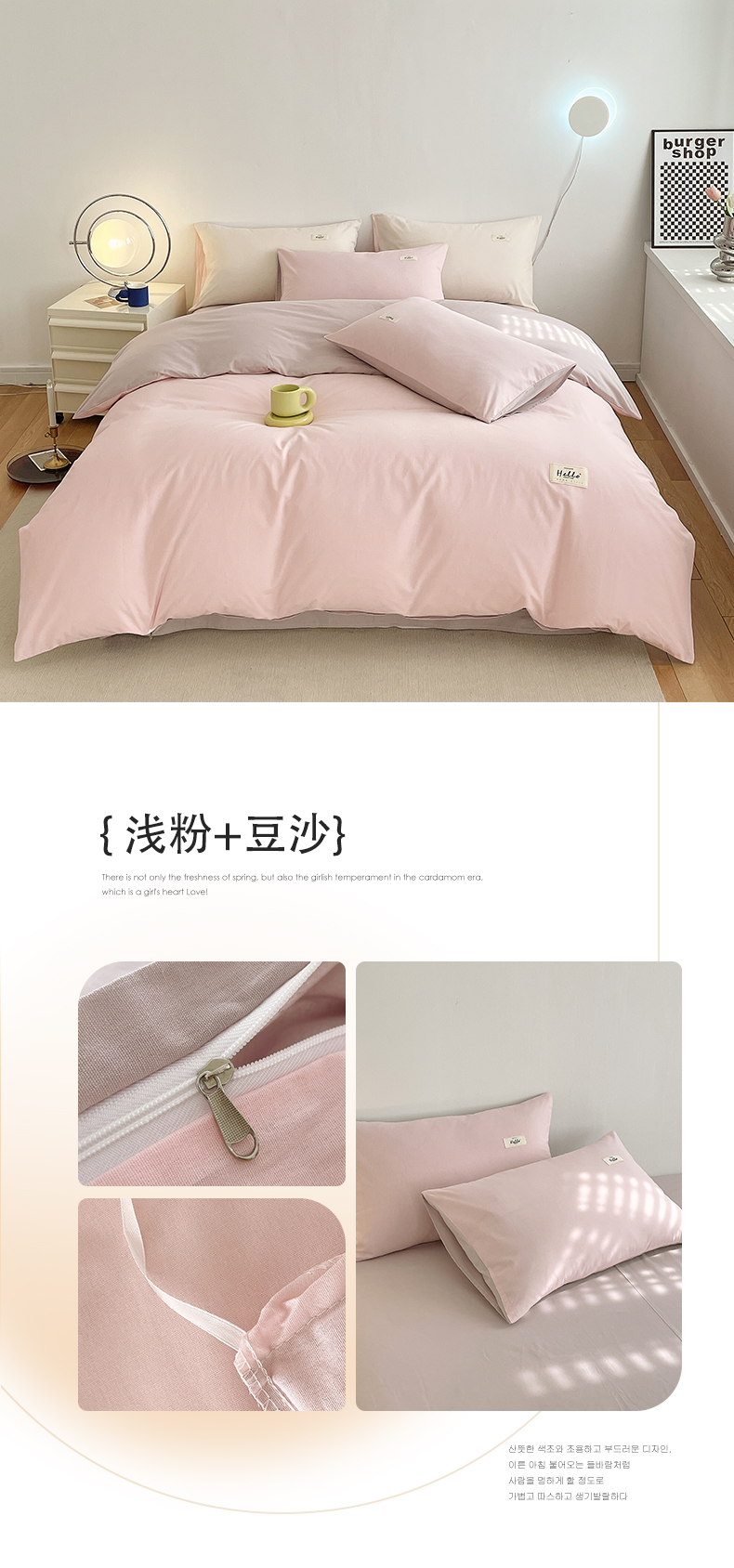当前位置: 91家纺网 > 商品网购 > 床品套件 > 四件套 > 全棉普通四件套 > 798家纺 2026新款全棉13070纯色双拼系列四件套场景二 浅粉+豆沙