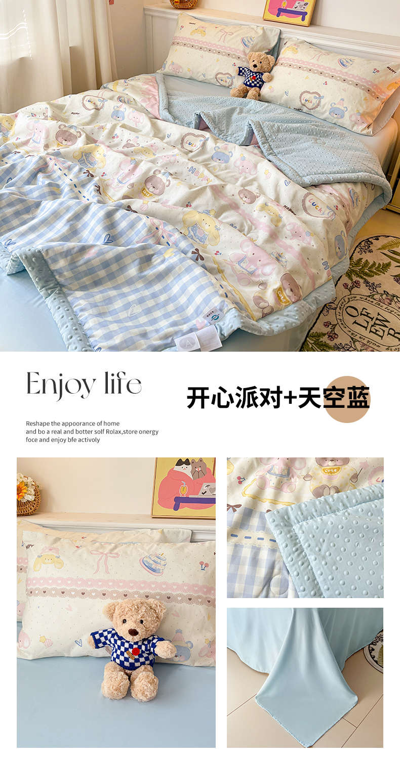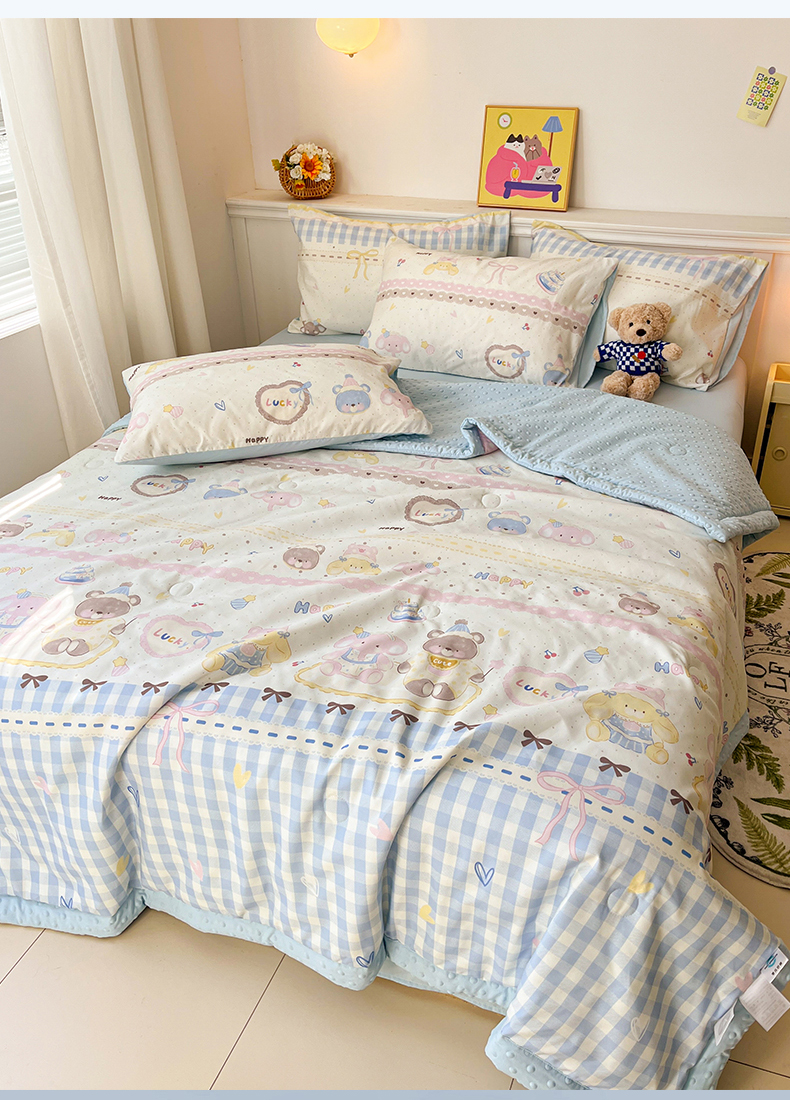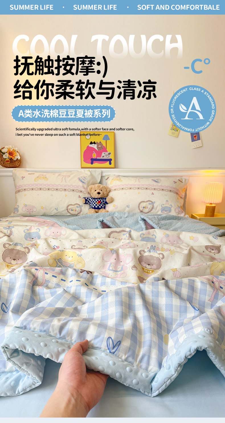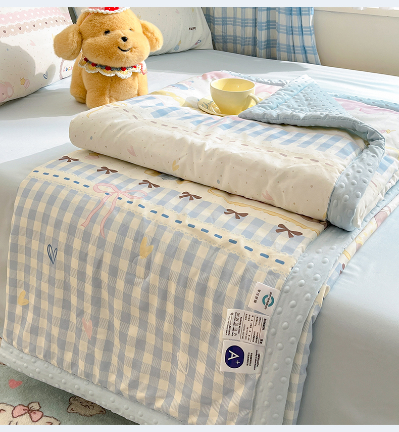 盛秋家纺 2026新款A类水洗棉豆豆夏被系列 开心派对+天空蓝