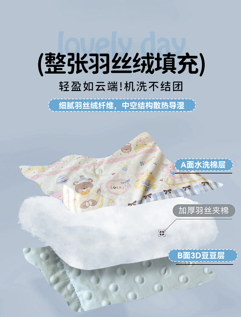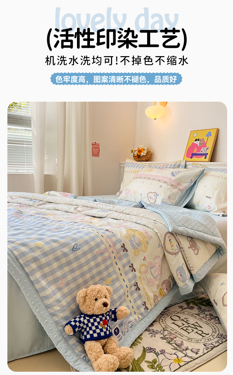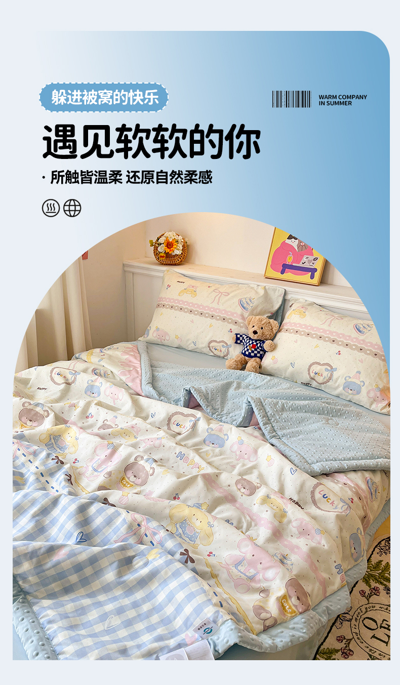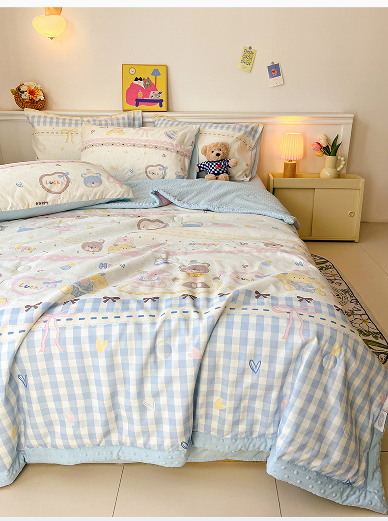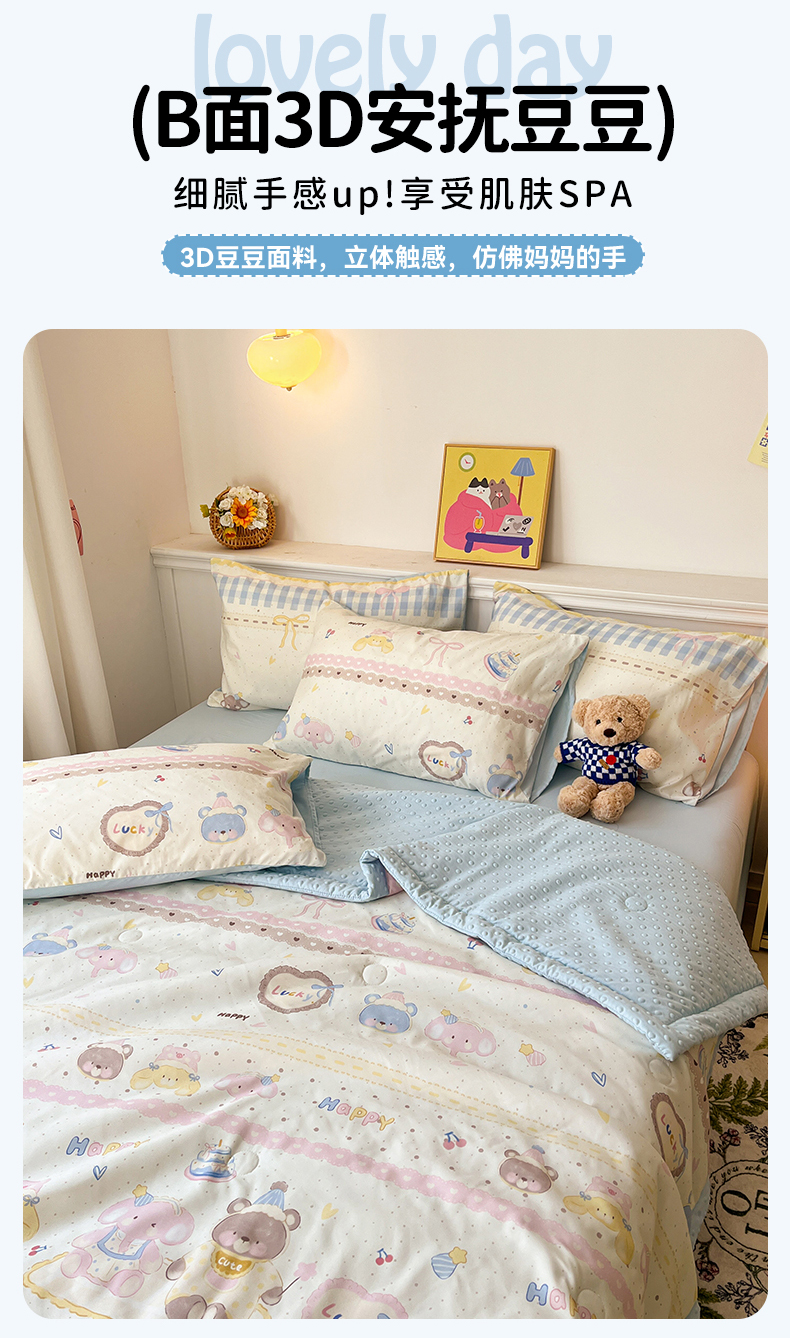 盛秋家纺 2026新款A类水洗棉豆豆夏被系列 开心派对+天空蓝