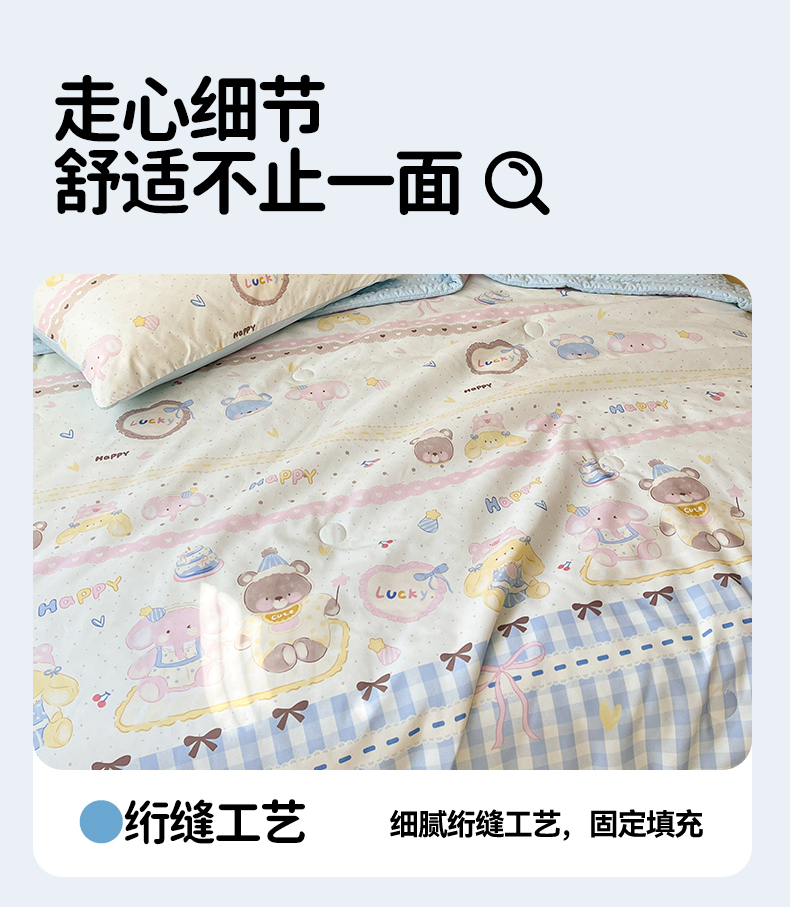 当前位置: 91家纺网 > 商品网购 > 被子 > 夏被 > 盛秋家纺 2026新款A类水洗棉豆豆夏被系列 开心派对+天空蓝