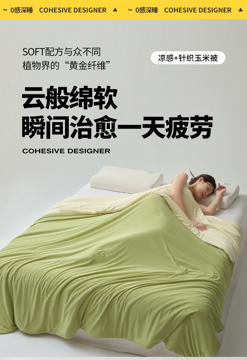 商品名称:帕拉美拉 2025新款凉感丝夏被针织棉高克重玉米聚乳酸双拼两用被 柳绿+月光杯