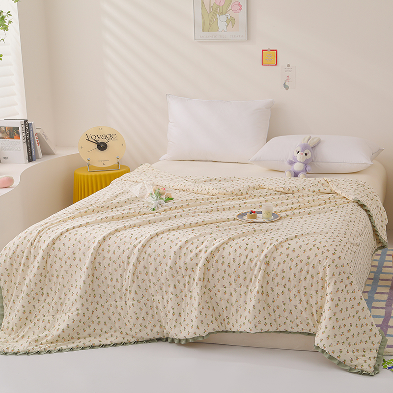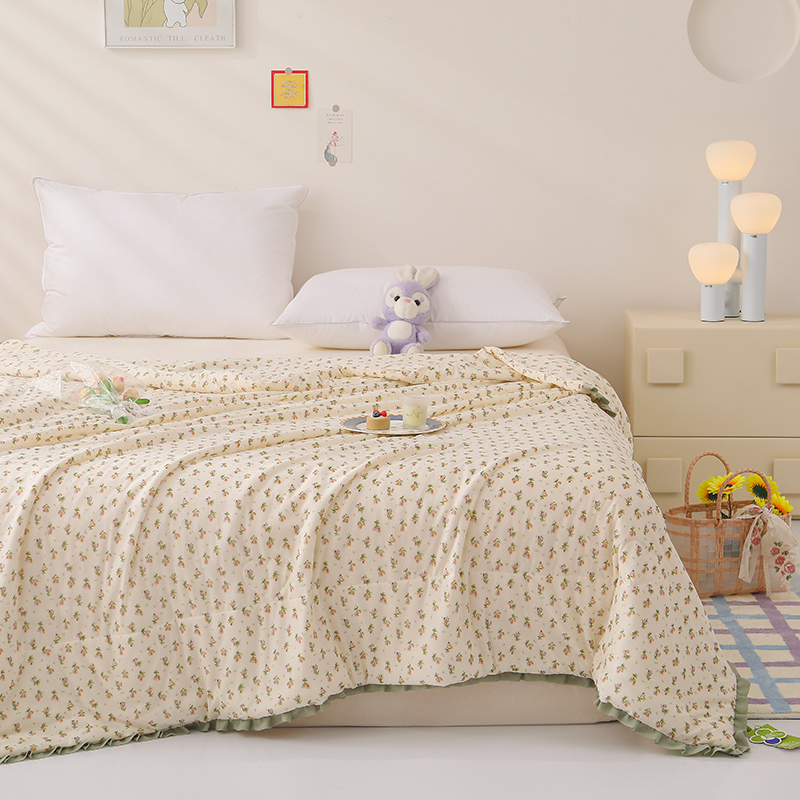 (总)有货 2023新款小清新花边韩版水洗棉麻豆豆夏被简约复古风,枫情,格格,绿野,绿意,南风,暖心,森林,盛开,太空,微笑,向阳花,小鹿,枝丫