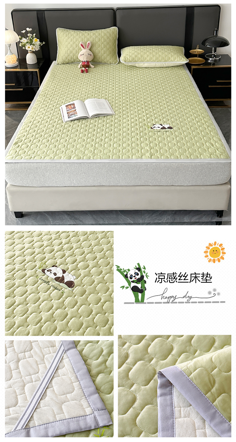 商品名称:爱洛家纺 2025新款凉感丝羽丝棉床垫 熊猫-豆沙绿