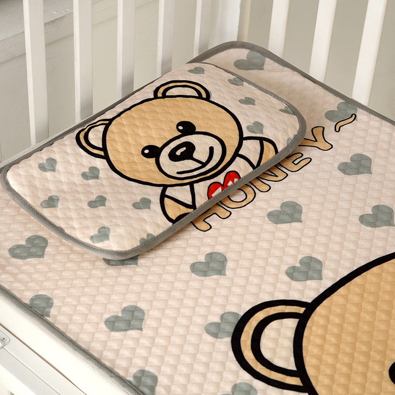 沁童儿童用品店 2025新款儿童冰豆豆凉席两件套 可爱小熊