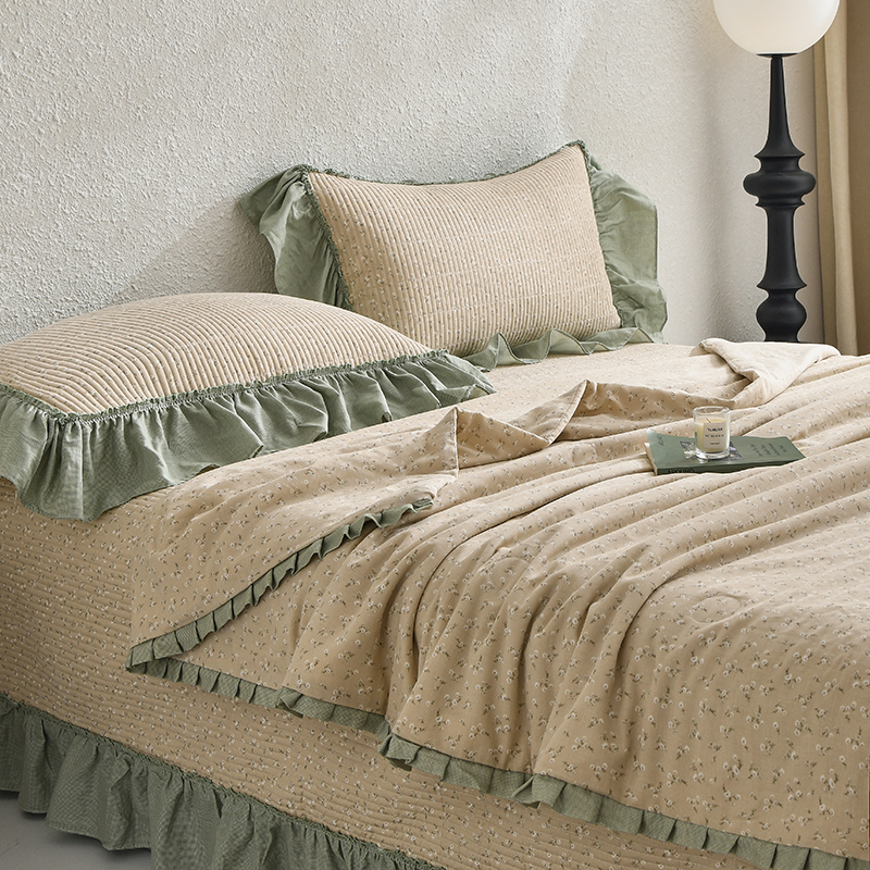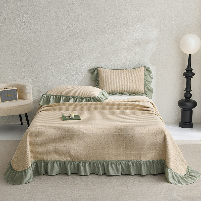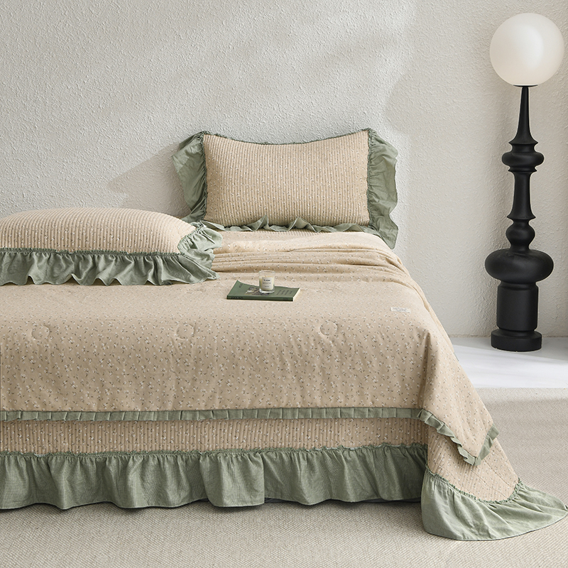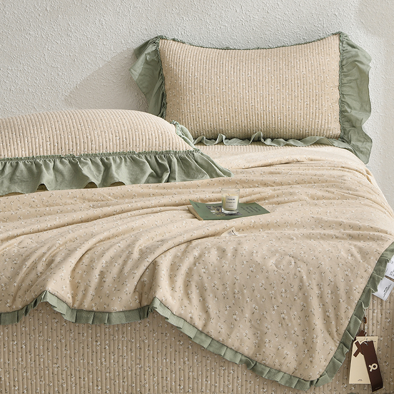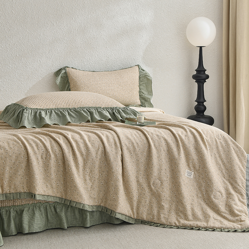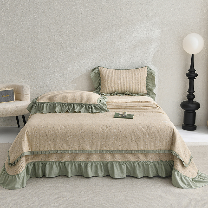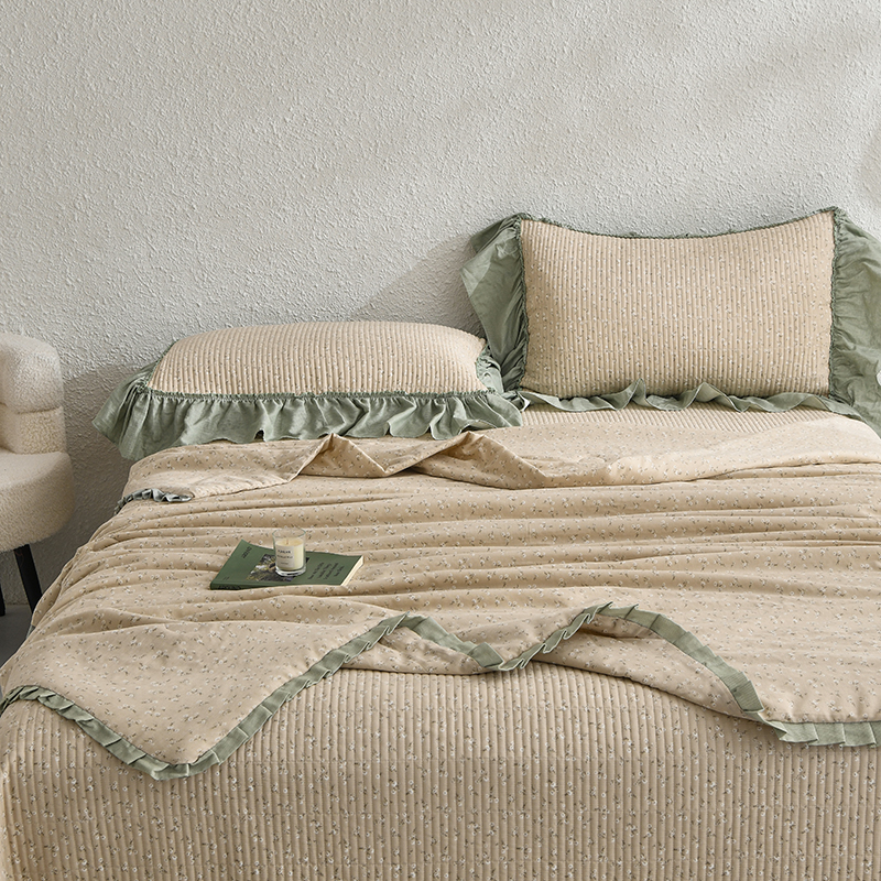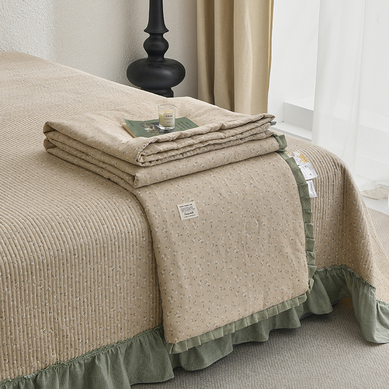 商品名称:有货 2025春夏新款全棉纯棉双层纱夏被夏凉被空调被+床盖三件套 盛夏