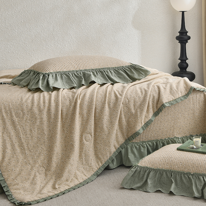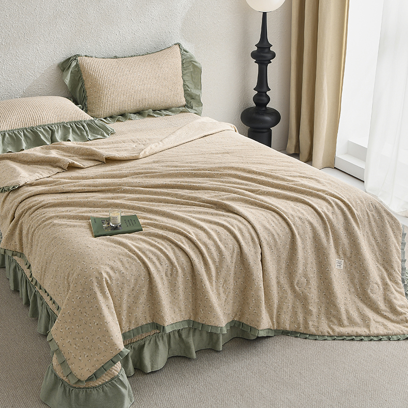 (总)有货 2023新款小清新花边韩版水洗棉麻豆豆夏被简约复古风,枫情,格格,绿野,绿意,南风,暖心,森林,盛开,太空,微笑,向阳花,小鹿,枝丫