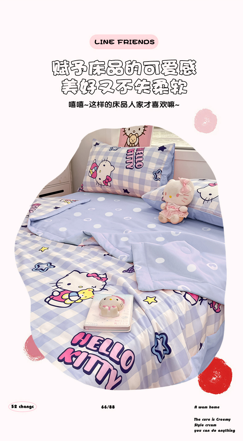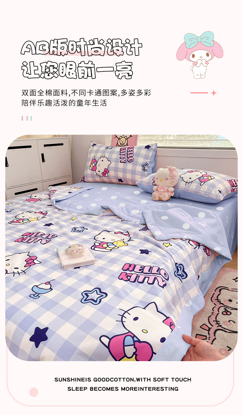 商品名称:博雅 2025新款三丽鸥全棉纯棉夏被夏凉被空调被四件套 夏被全棉-气球KT