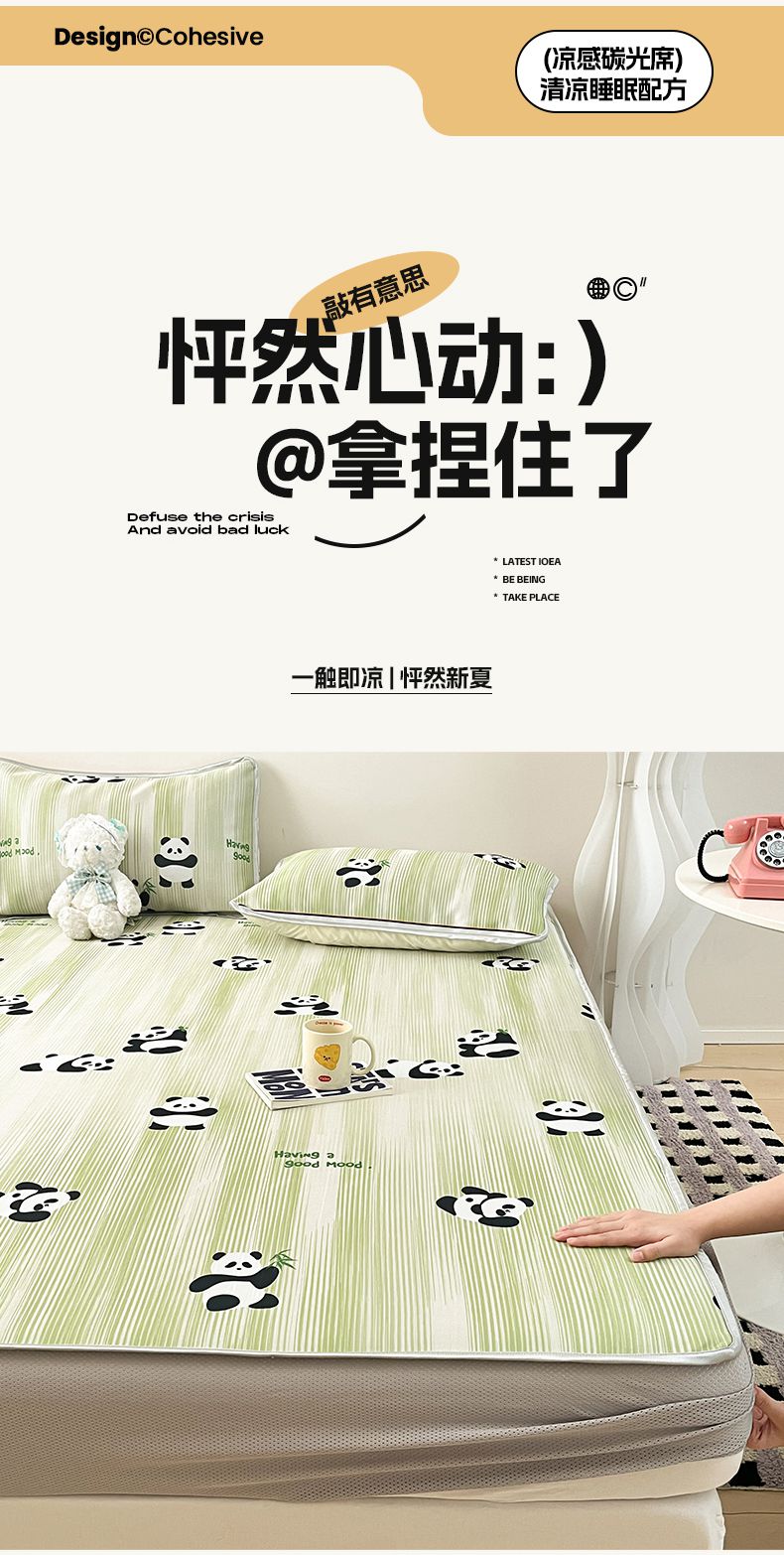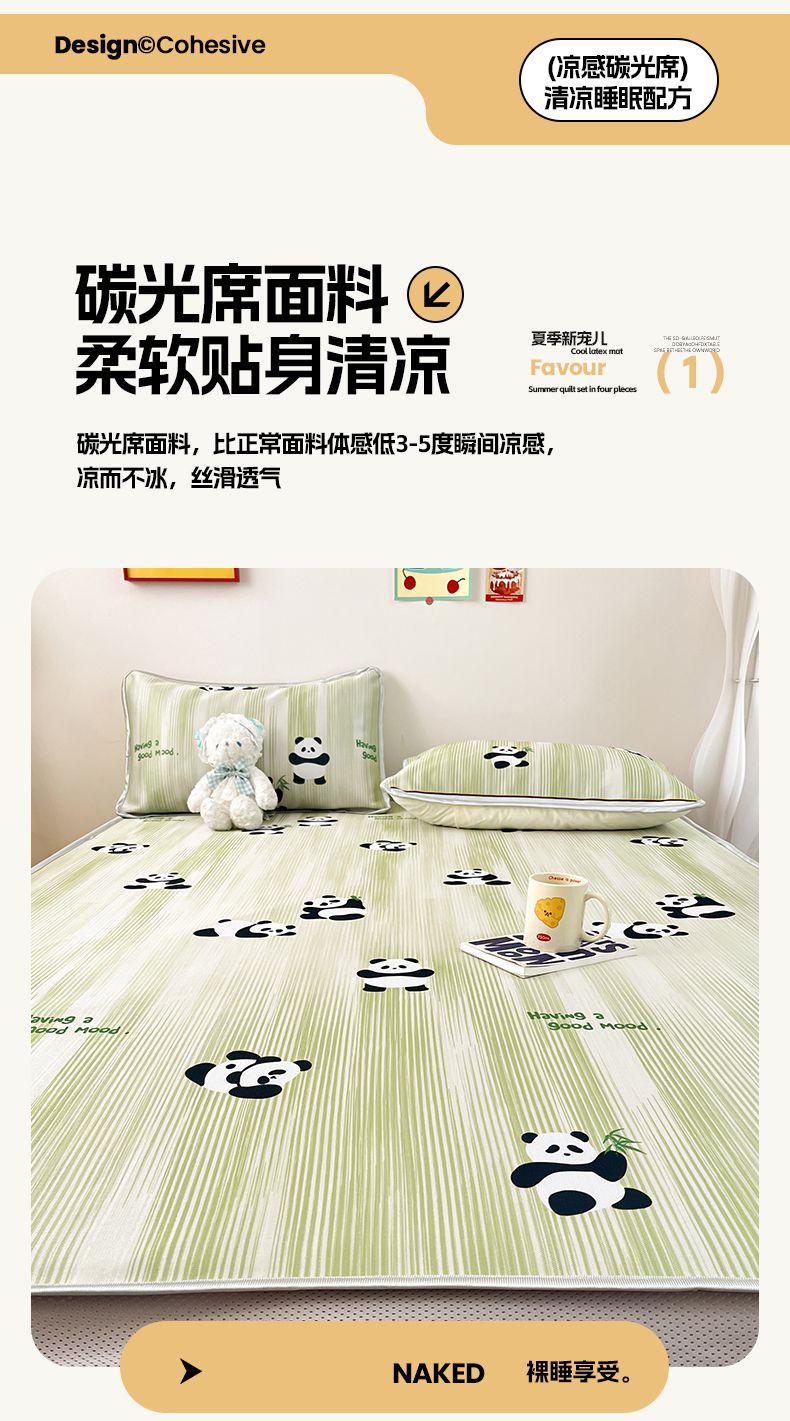 (总)摩妮卡 2025新款数码碳光席冰丝席三件套床笠款